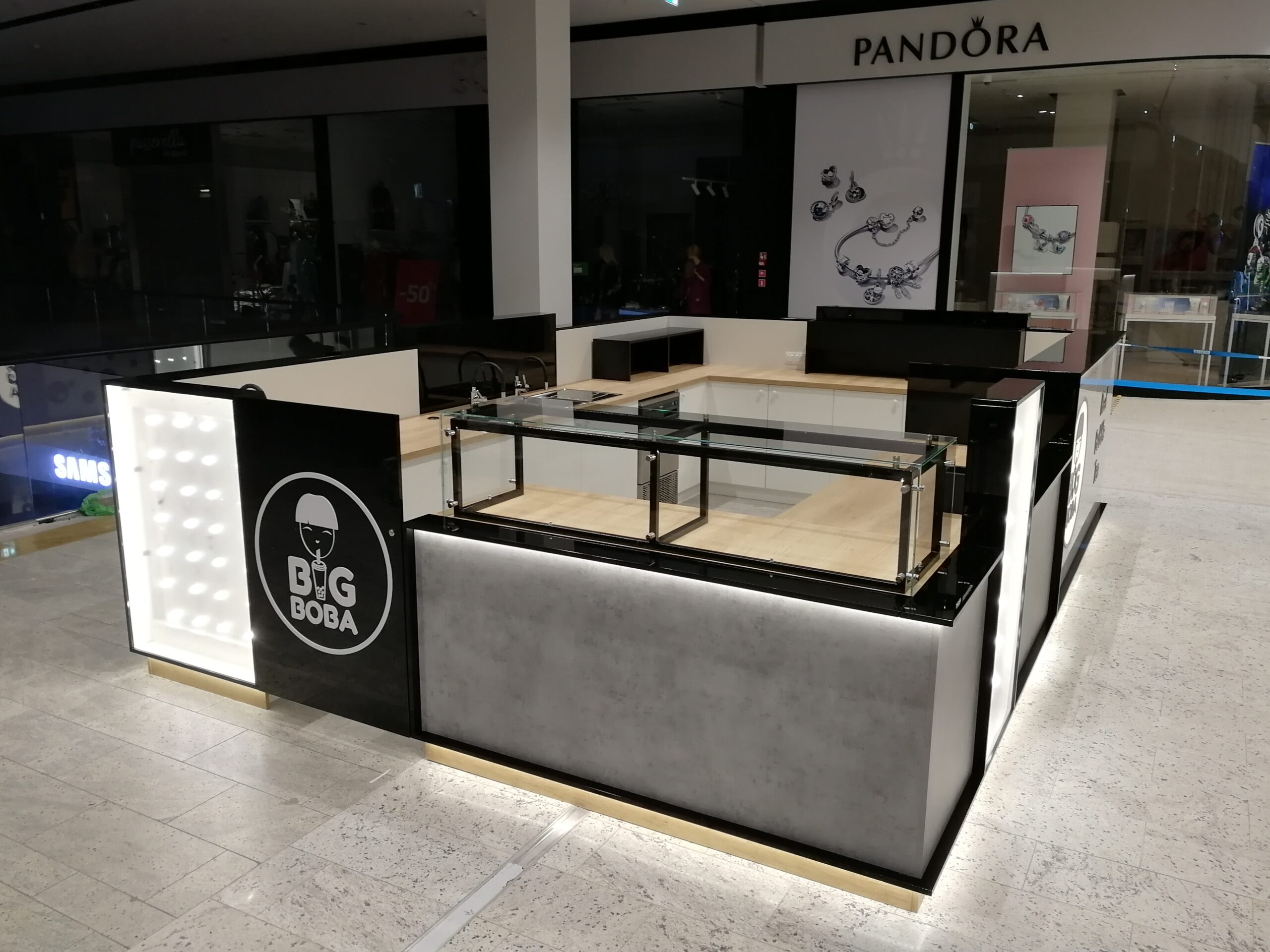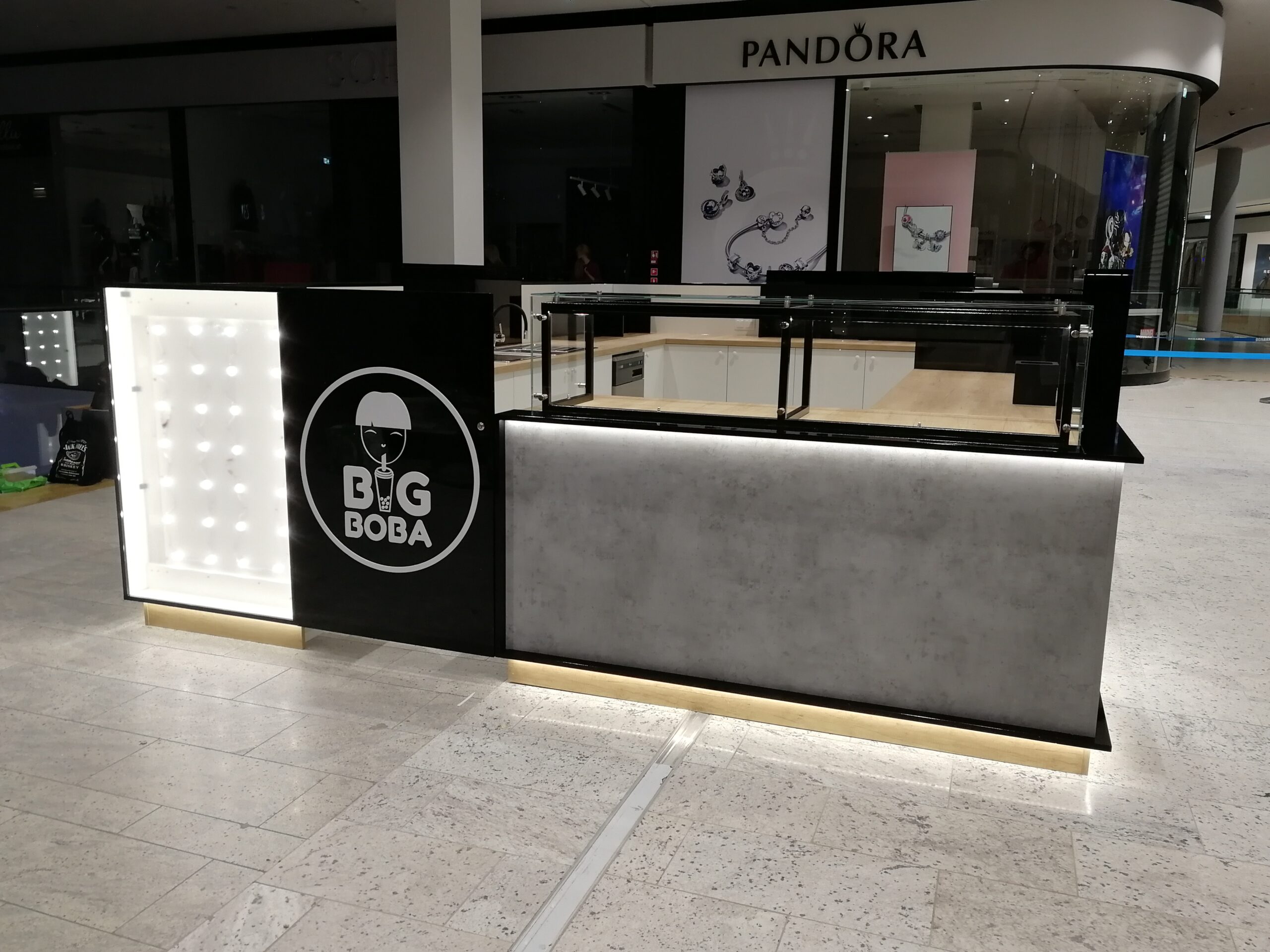 Blat o wysokości 90 cm i laminat drewnopodobny zapewniają dużo miejsca na przygotowanie herbatki, a jednocześnie umożliwiają łatwe czyszczenie i utrzymanie higieny. Wszystko to sprawia, że stoisko Big Boba to idealne miejsce na przystanek podczas zakupów w Bonarce, gdzie klienci mogą zrelaksować się i spróbować oryginalnych smaków bubble tea.