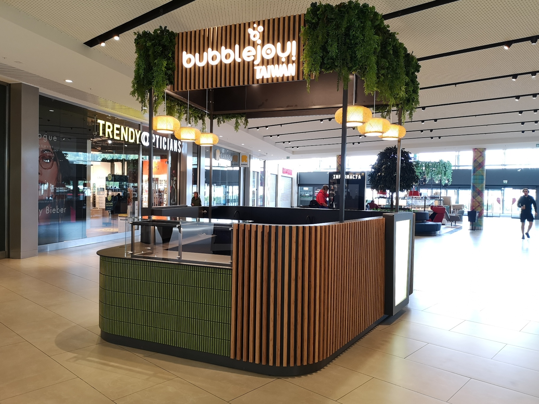 Dla naszego stałego klienta, właściciela marki BubbleJoy, stworzyliśmy niepowtarzalną przestrzeń dla ich nowego prestiżowego konceptu – BubbleJoy Tajwan. To luksusowa marka, oferująca najwyższej jakości napoje typu bubble tea, przygotowywane z wyselekcjonowanych półproduktów sprowadzanych bezpośrednio z Tajwanu. Stoisko, usytuowane w sercu Łodzi, w Centrum Handlowym Manufaktura, przy głównym ciągu komunikacyjnym z parkingu, stanowi elegancką ekspozycję nowego, ekskluzywnego konceptu.