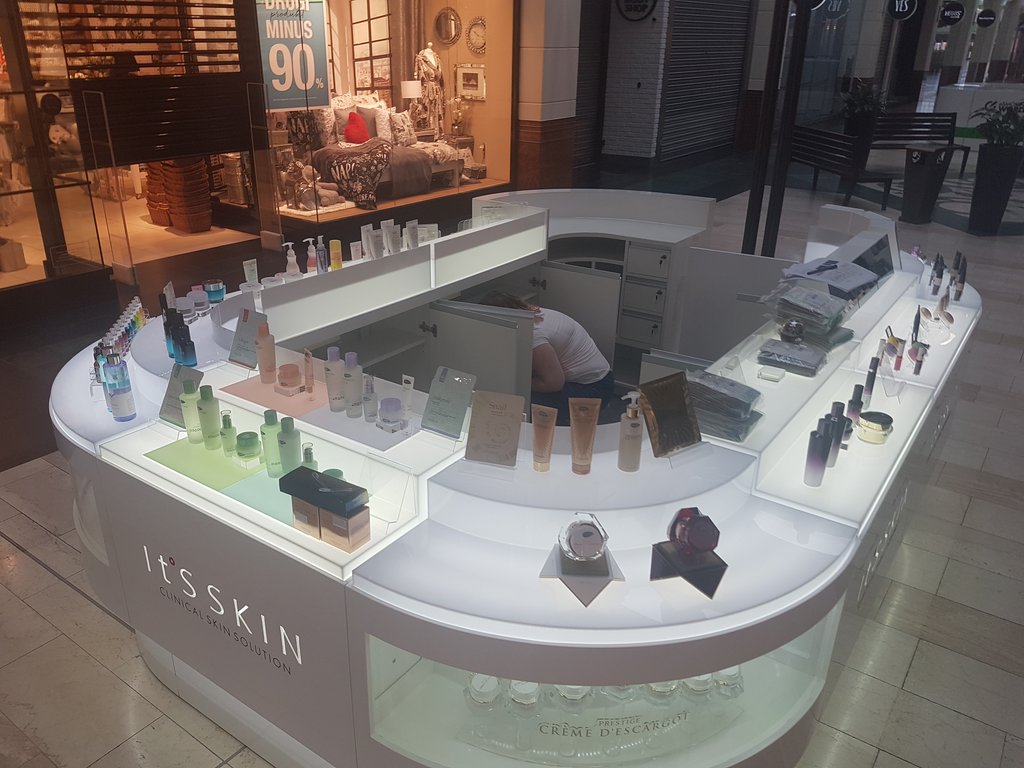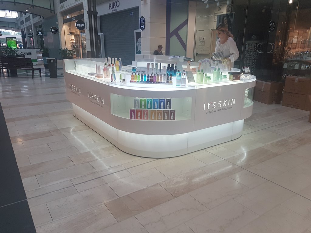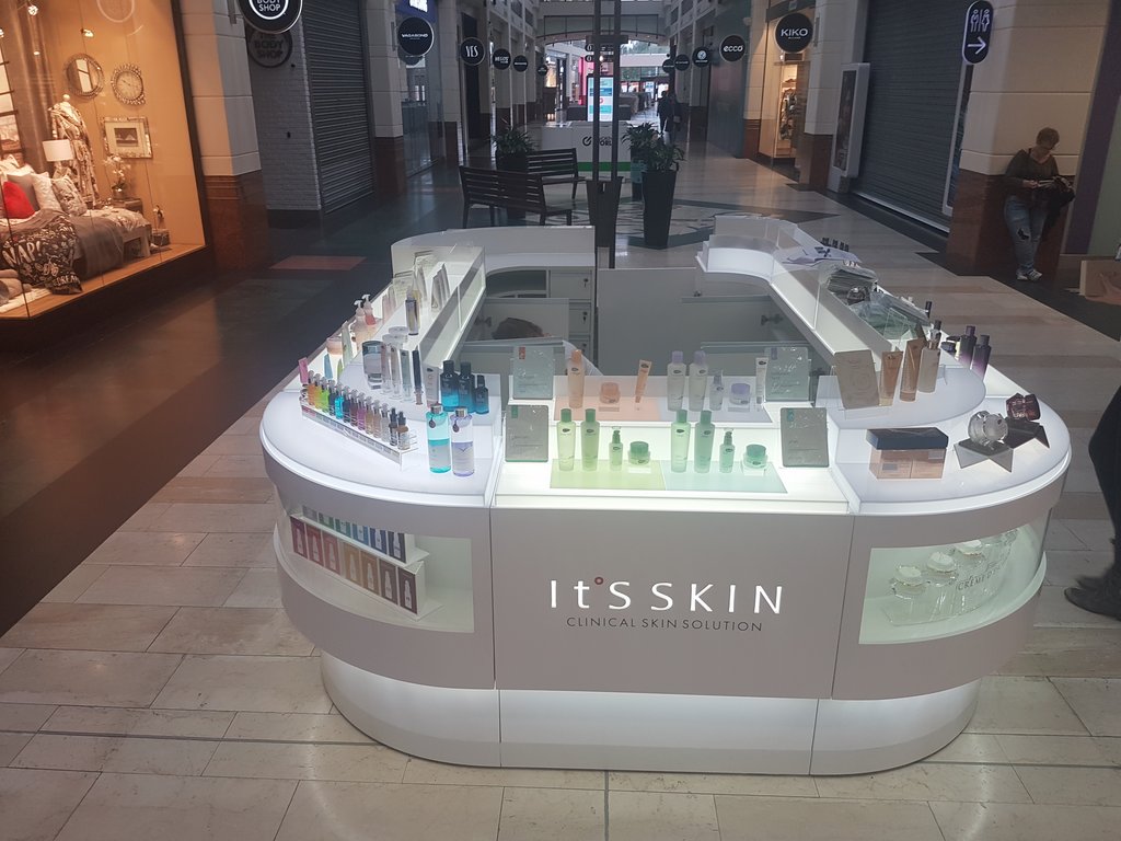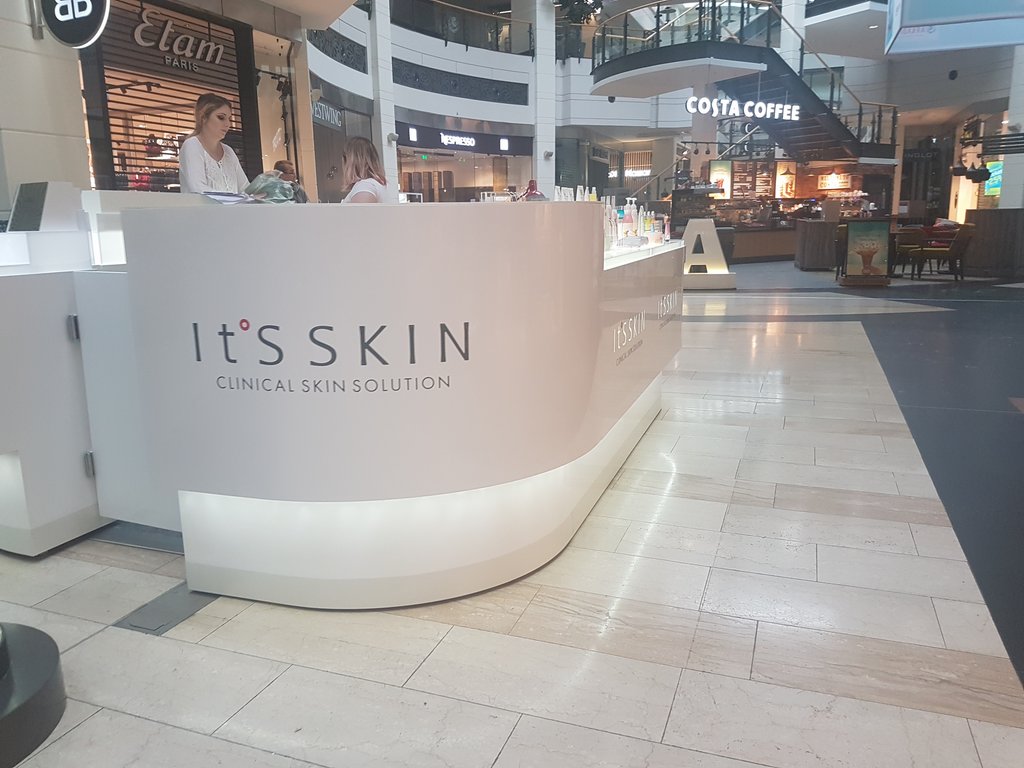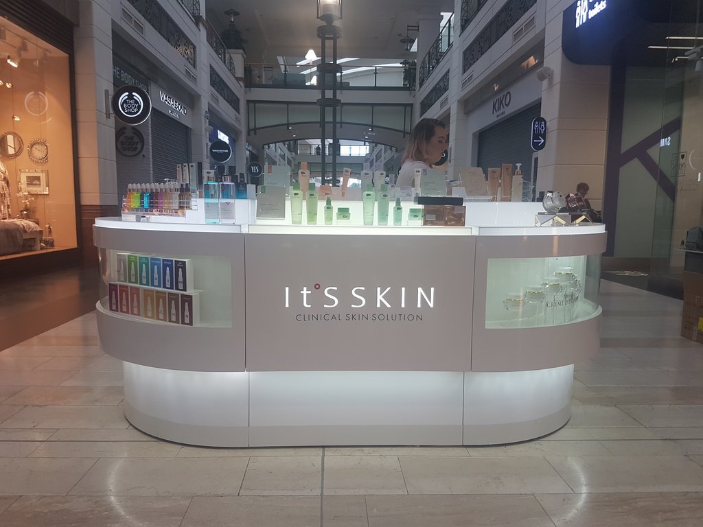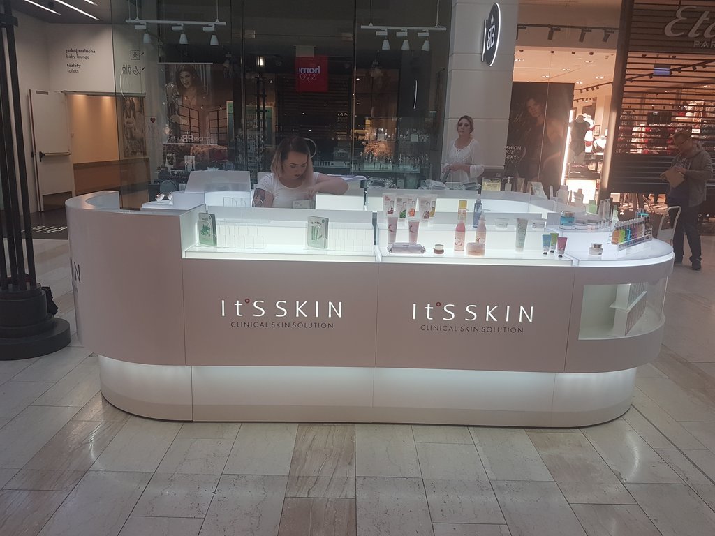 Ekskluzywna wyspa handlowa z kosmetykami dla marki It’s Skin w Galerii Handlowej Arkadia w Warszawie. To już druga wyspa dla firmy z kosmetykami koreańskimi po kiosku w Galerii Mokotów.