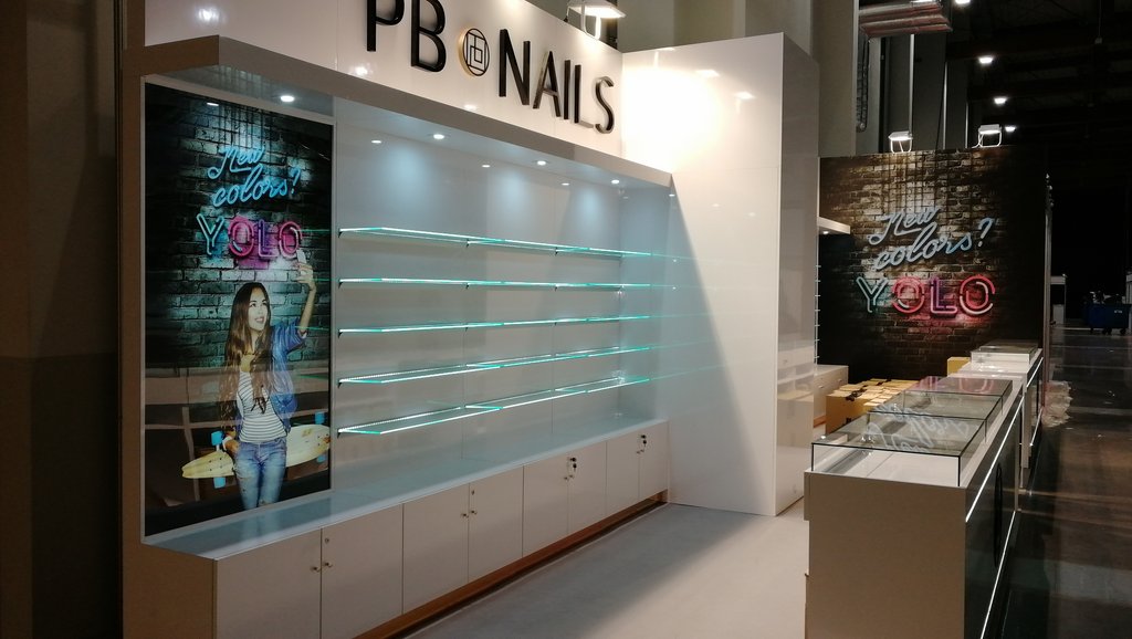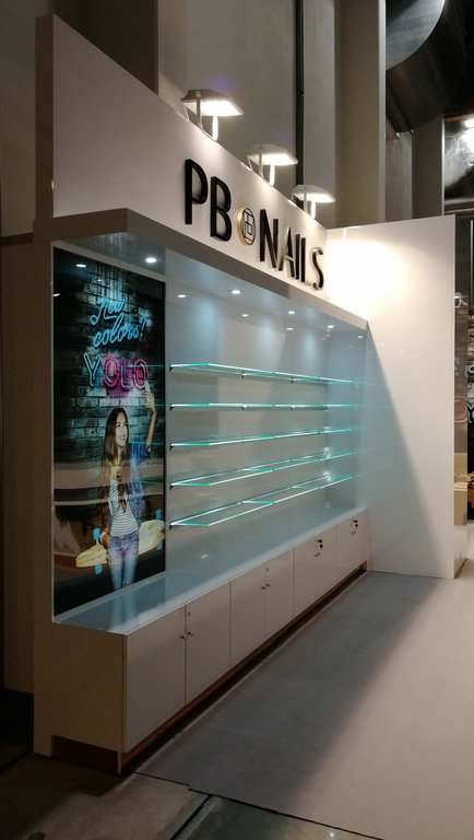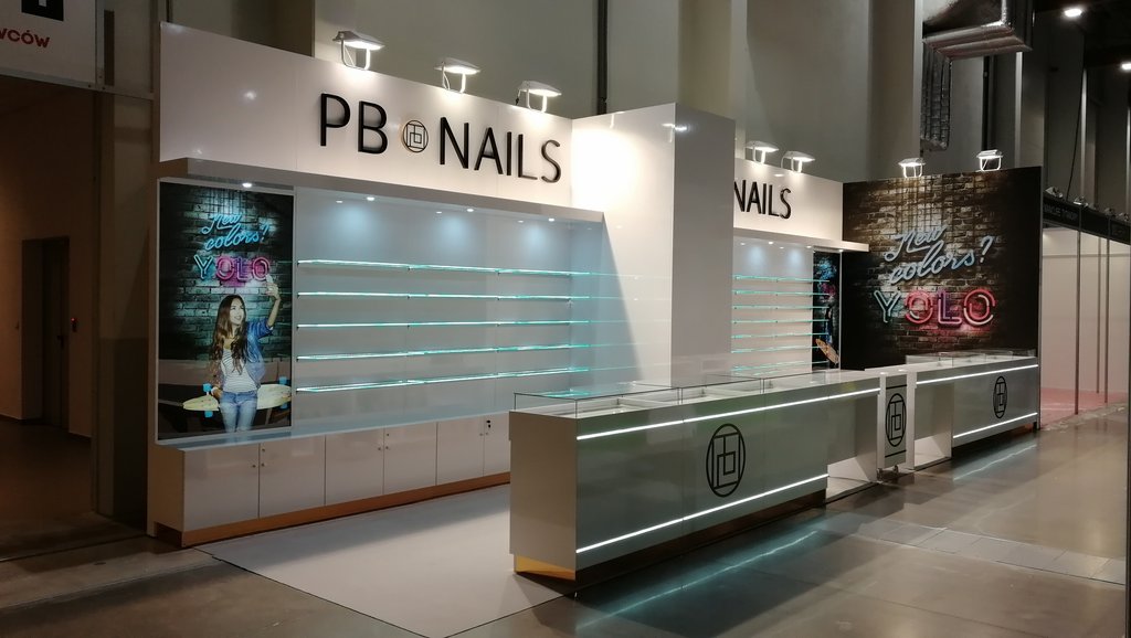 Przedstawiamy ekskluzywną zabudowę wystawienniczą, kosmetyczną w białym połysku na targi kosmetyczne – kongres LNE w Krakowie – Międzynarodowe Centrum Targowe EXPO Kraków. Stoisko o powierzchni 30 m2 (3 x 10 m) zawierało gabloty w połysku z wysuwanymi szufladami szklanymi (gablota klejona UV) oraz regałami z półkami szklanymi podświetlanymi krawędziowo (specjalistyczne profile) oraz z oświetleniem metalohalogenowym (lampy HQ 150W). Stoisko zawierało również zaplecze (kantorek 1 x 1 m) oraz grafiki wielkoformatowe dedykowane (wydruk UV wysokiej jakości na płycie HIPS biały połysk). Na uwagę zasługuje też ologowanie 3D (logotypy i loga) na nadstawkach i ladach oraz dodatki i akcenty wykonane ze złotego pleksiglas (lustro bezpieczne zlote) oraz laminatu HPL metalicznego (złoty połysk). Całe stoisko wykonane jako indywidualna zabudowa targowa wykonana przez firmę SPS stoisko.com spółka z o. o. od projektu, poprzez produkcję, na montażu, konserwacji i magazynowaniu kończąc, przy stałym nadzorze na każdym etapie produkcyjnym, wykonawczym i projektowym.