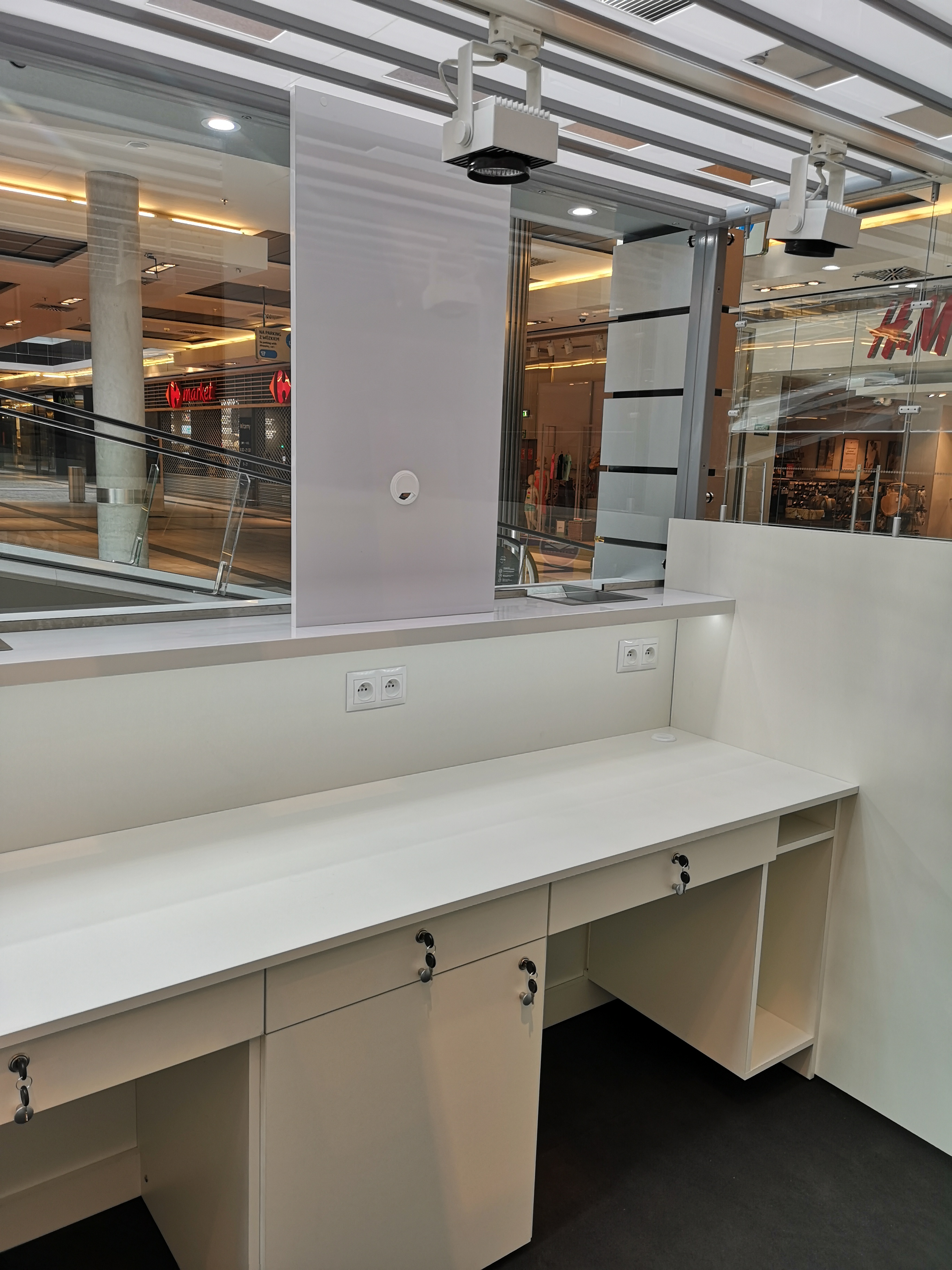 Zabudowa jest nowoczesna, dostosowana do wymogów Galerii i spełnia wymogi bezpieczeństwa konieczne przy prowadzeniu takiego rodzaju działalności.