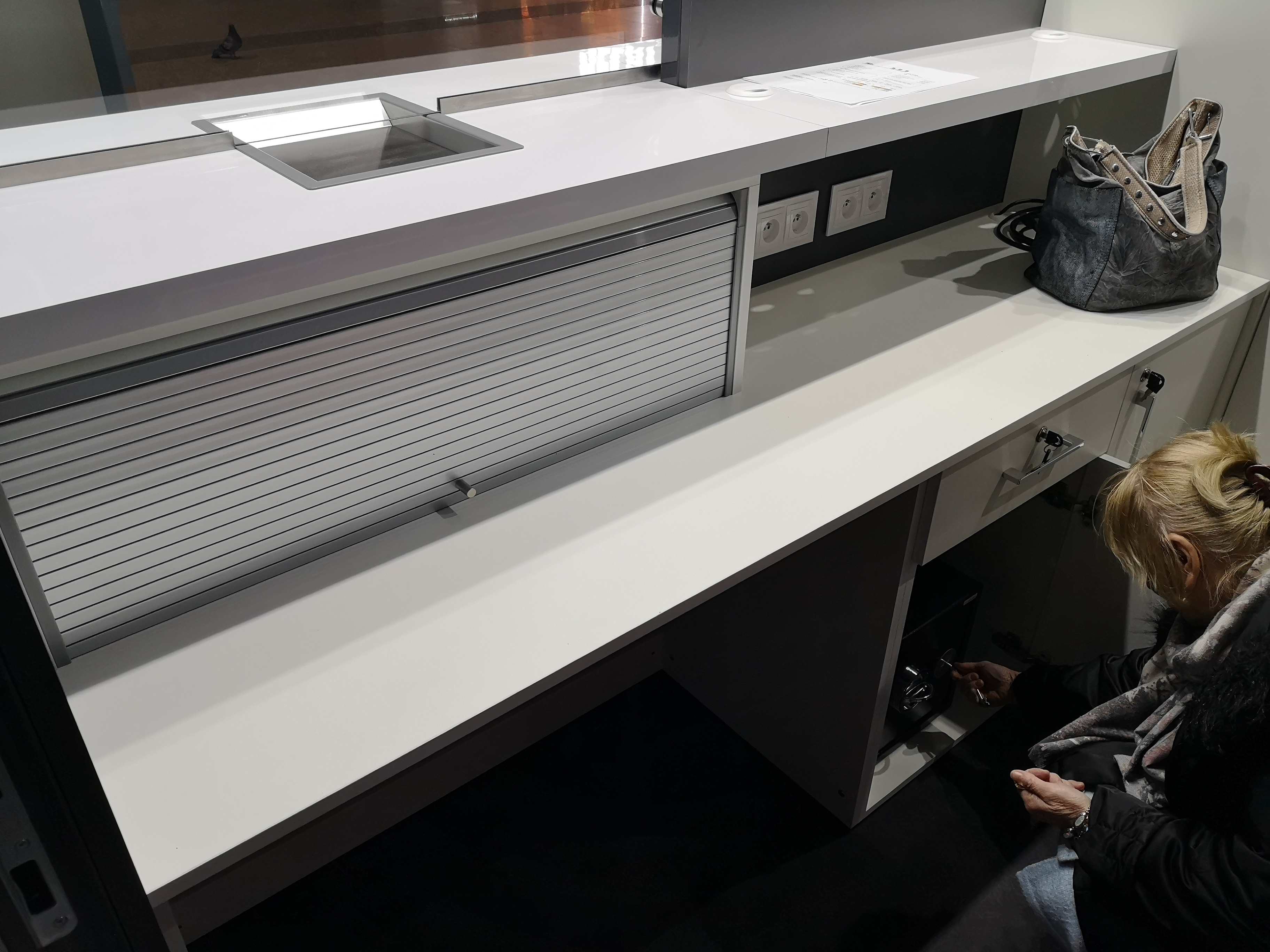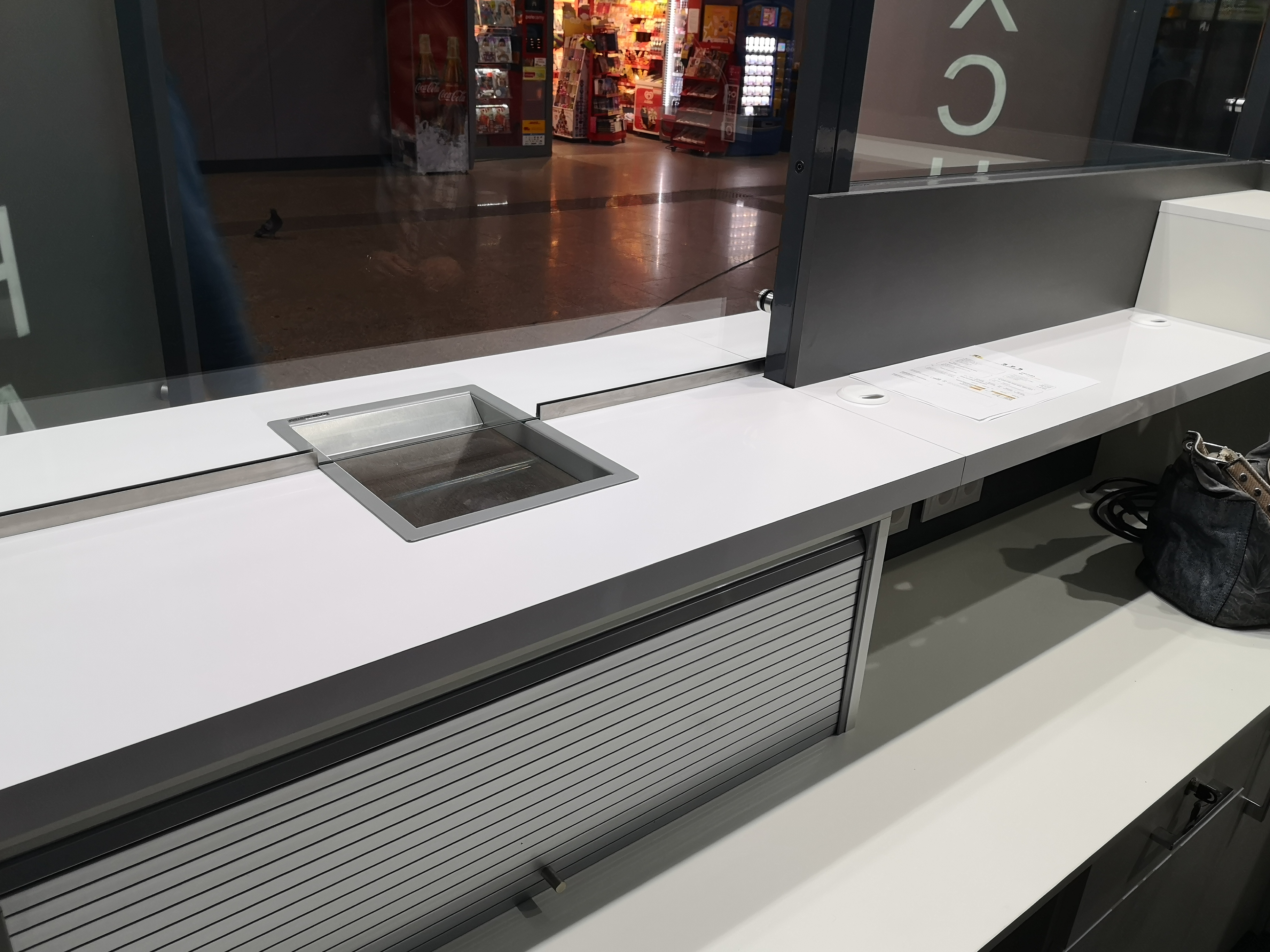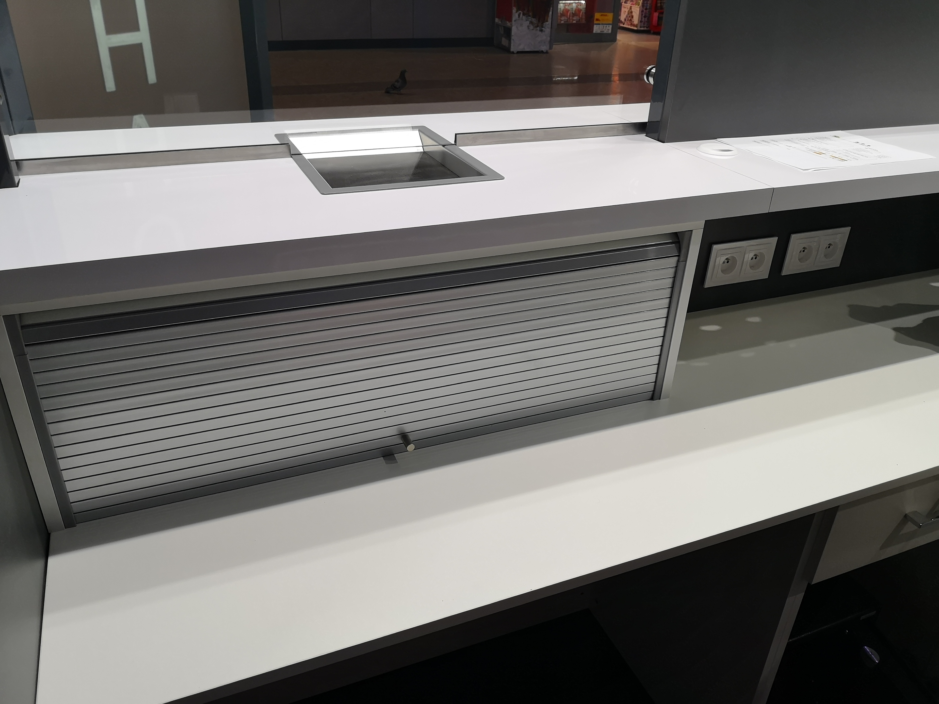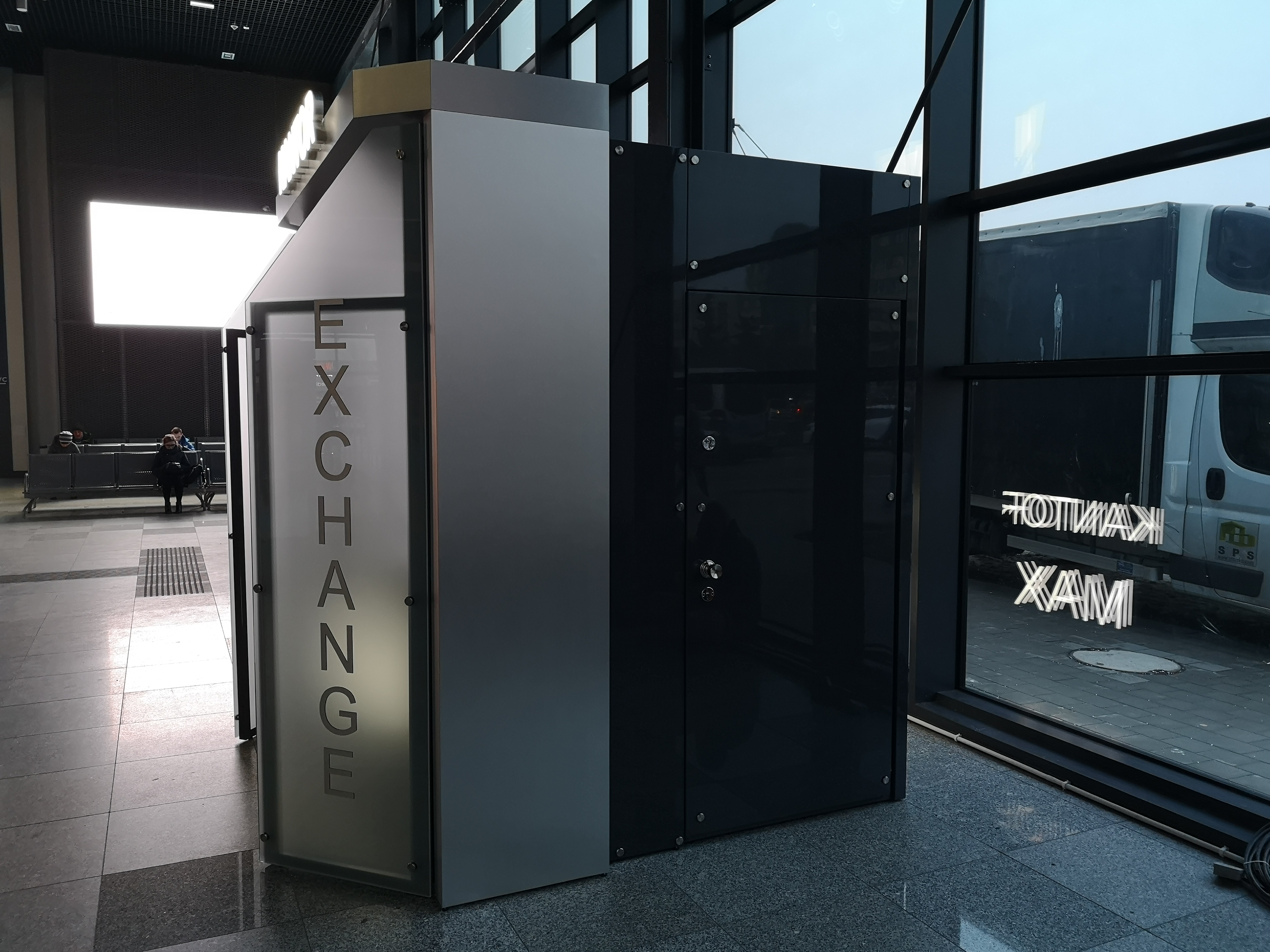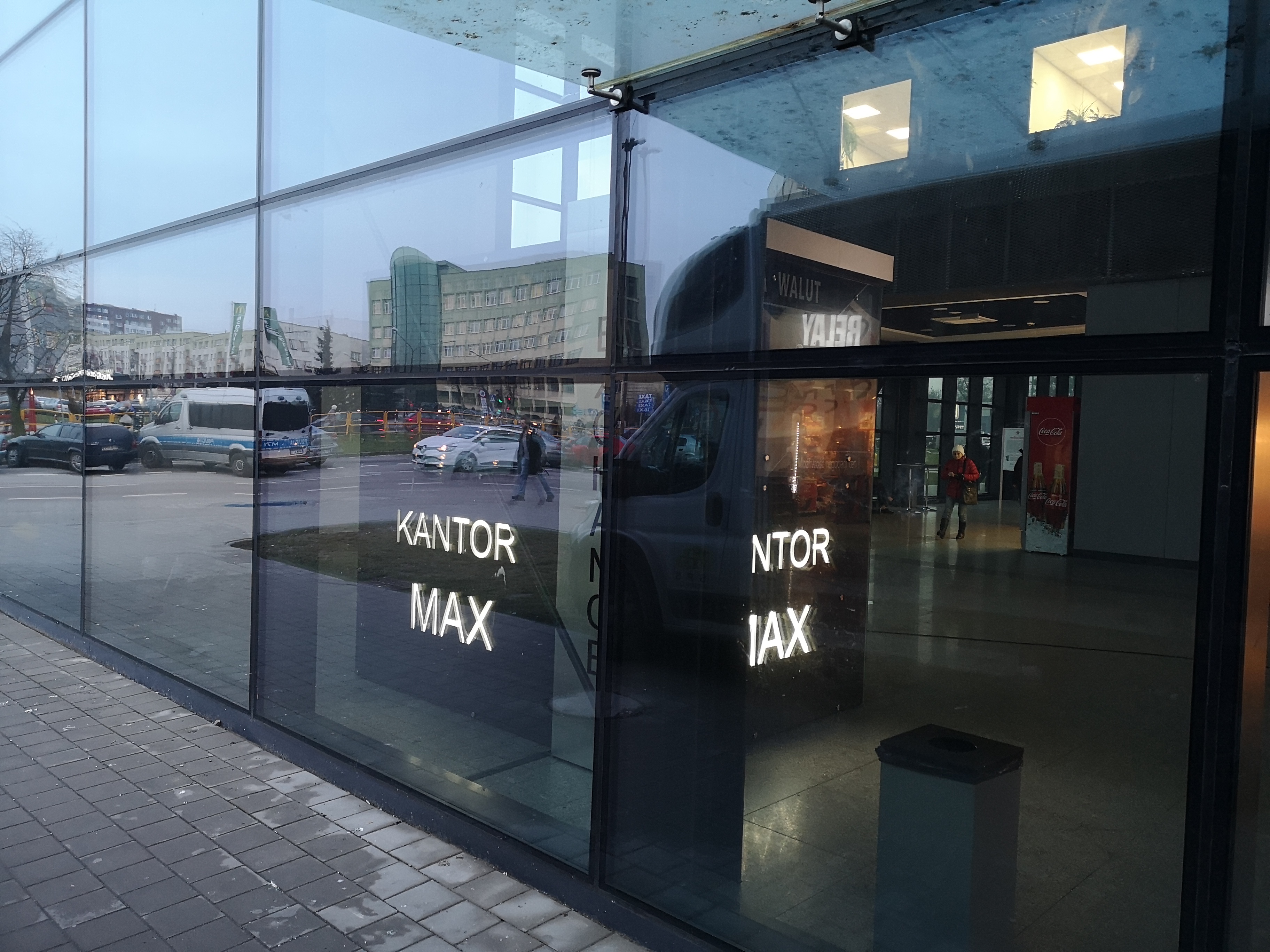 Prezentujemy Państwu stoisko handlowo-usługowe typu kantor przygotowanego dla naszego klienta, Kantor MAX. Jest to wolnostojący shop-in-shop wystawiony w przestrzeni ogólnodostępnej dworca PKS Nova w Białystoku. Powierzchnia całkowita to około 7,5 m2, przy wymiarach stoiska 270x270cm i wysokości 270 cm. Stoisko zostało przez nas zaprojektowane pod kątem wykonawczym. Zapewniliśmy uzgodnienia, kontakt z Galerią, projekty branżowe i pomiary oraz kompletną dokumentację powykonawczą.