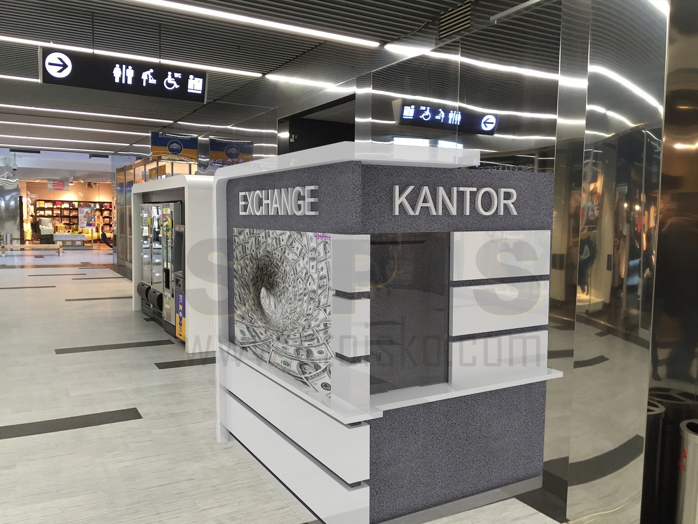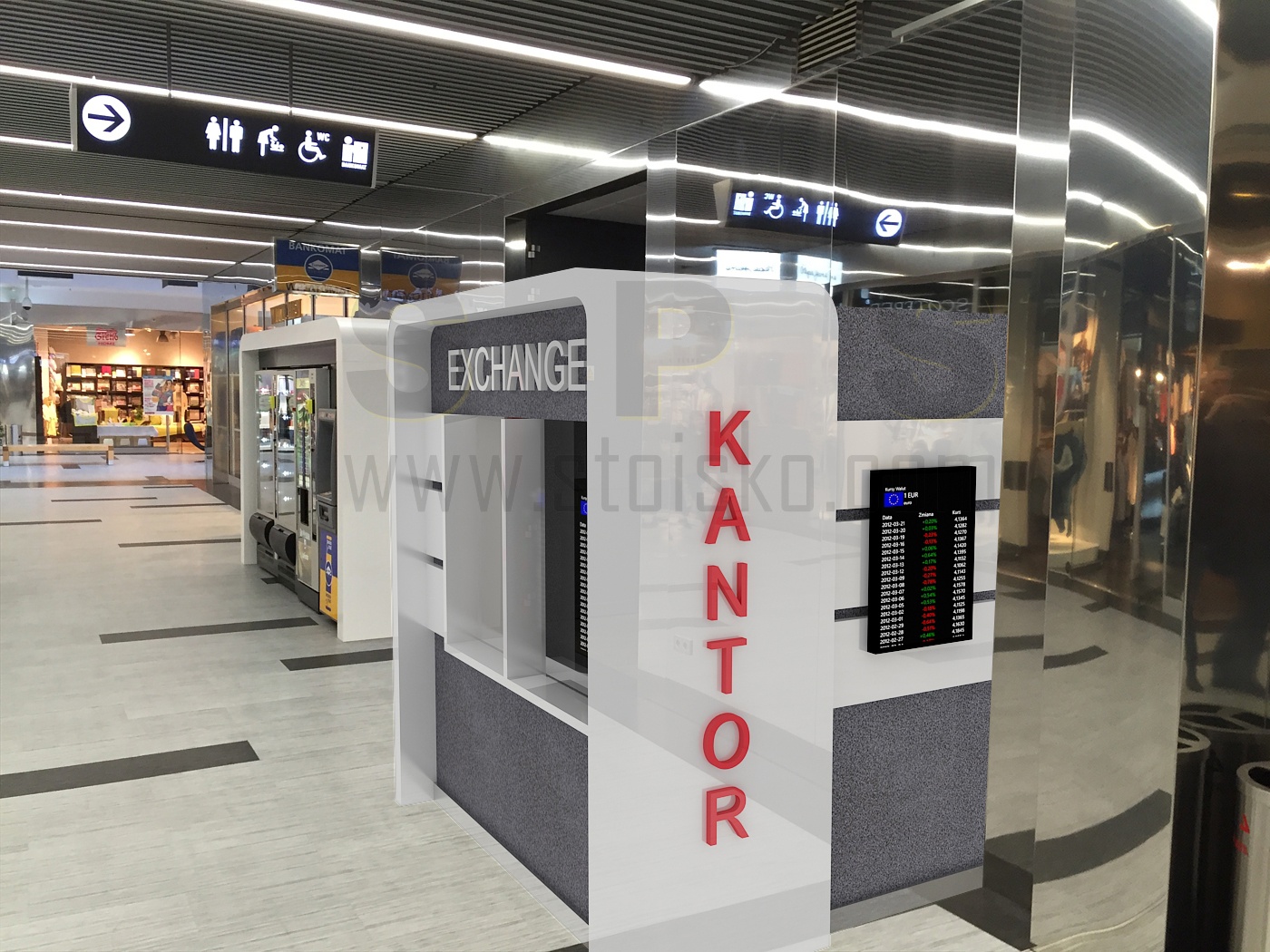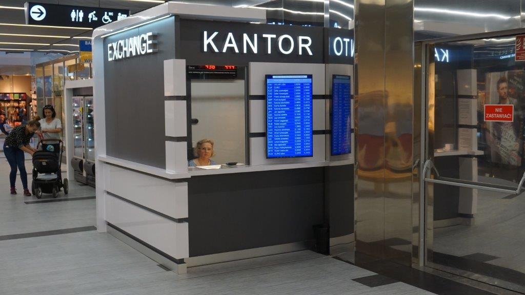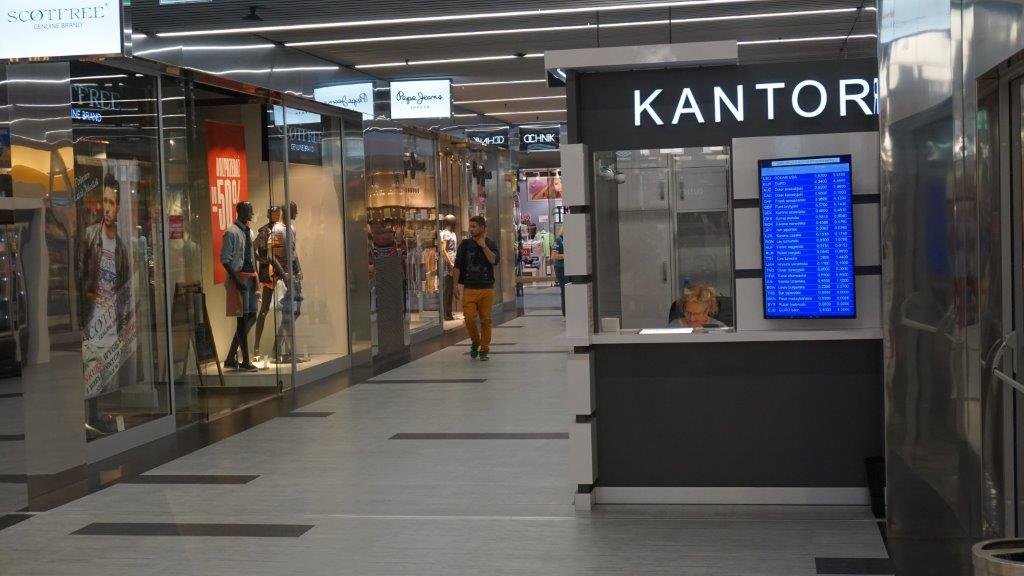 Kantor wymiany walut w galerii handlowej