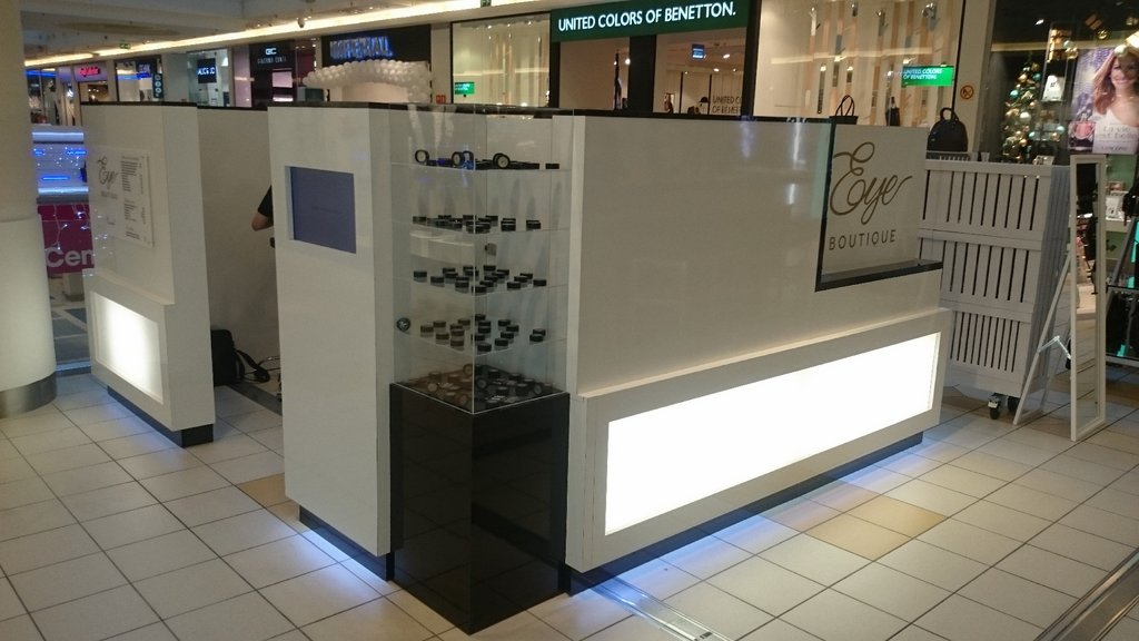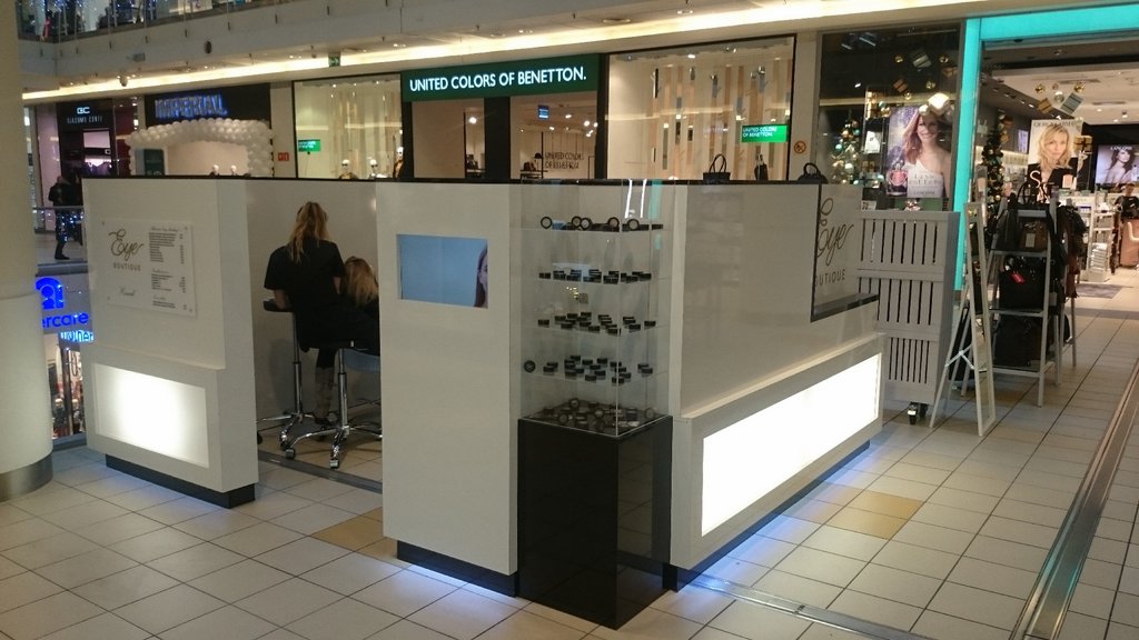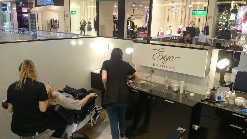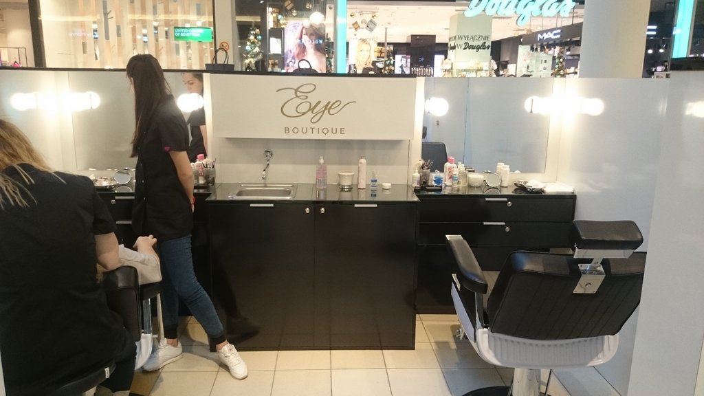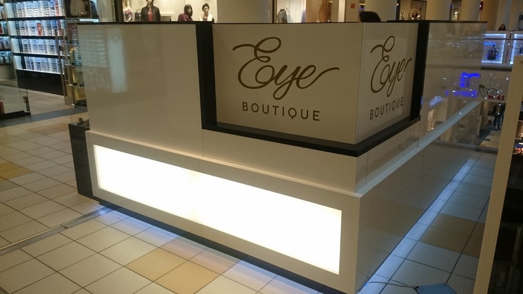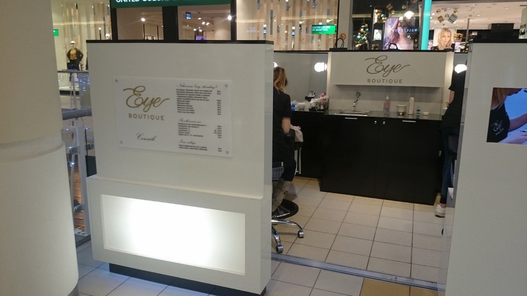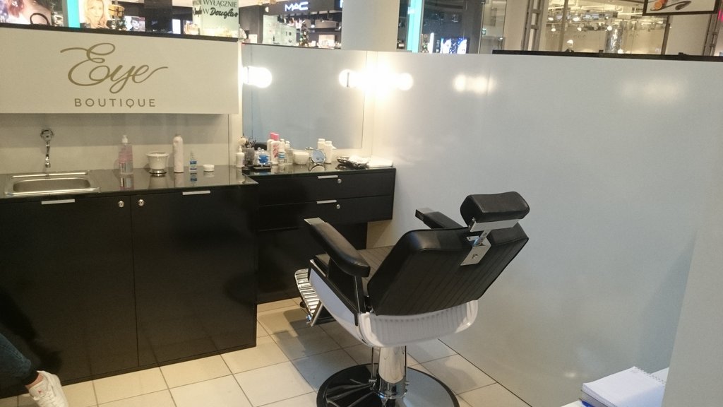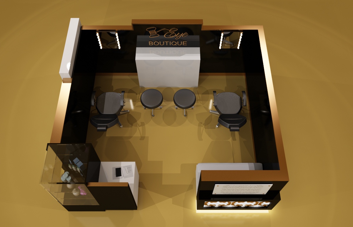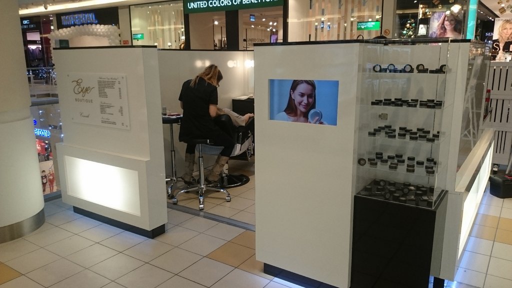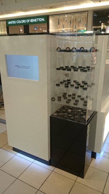 Kosmetyczna wyspa usługowa dla firmy zajmującej się pielęgnacją brwi.