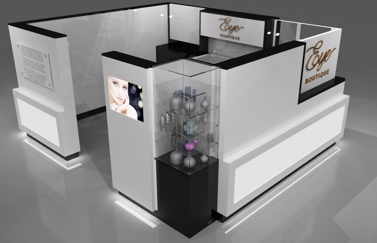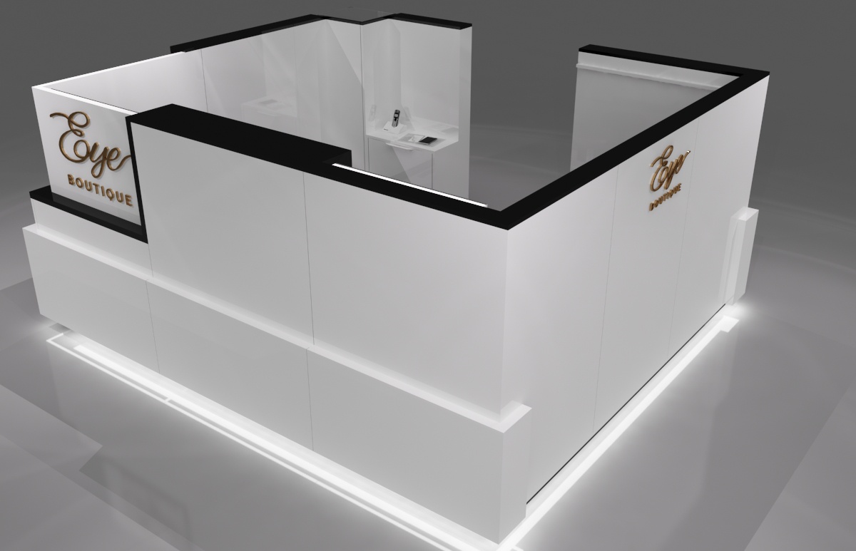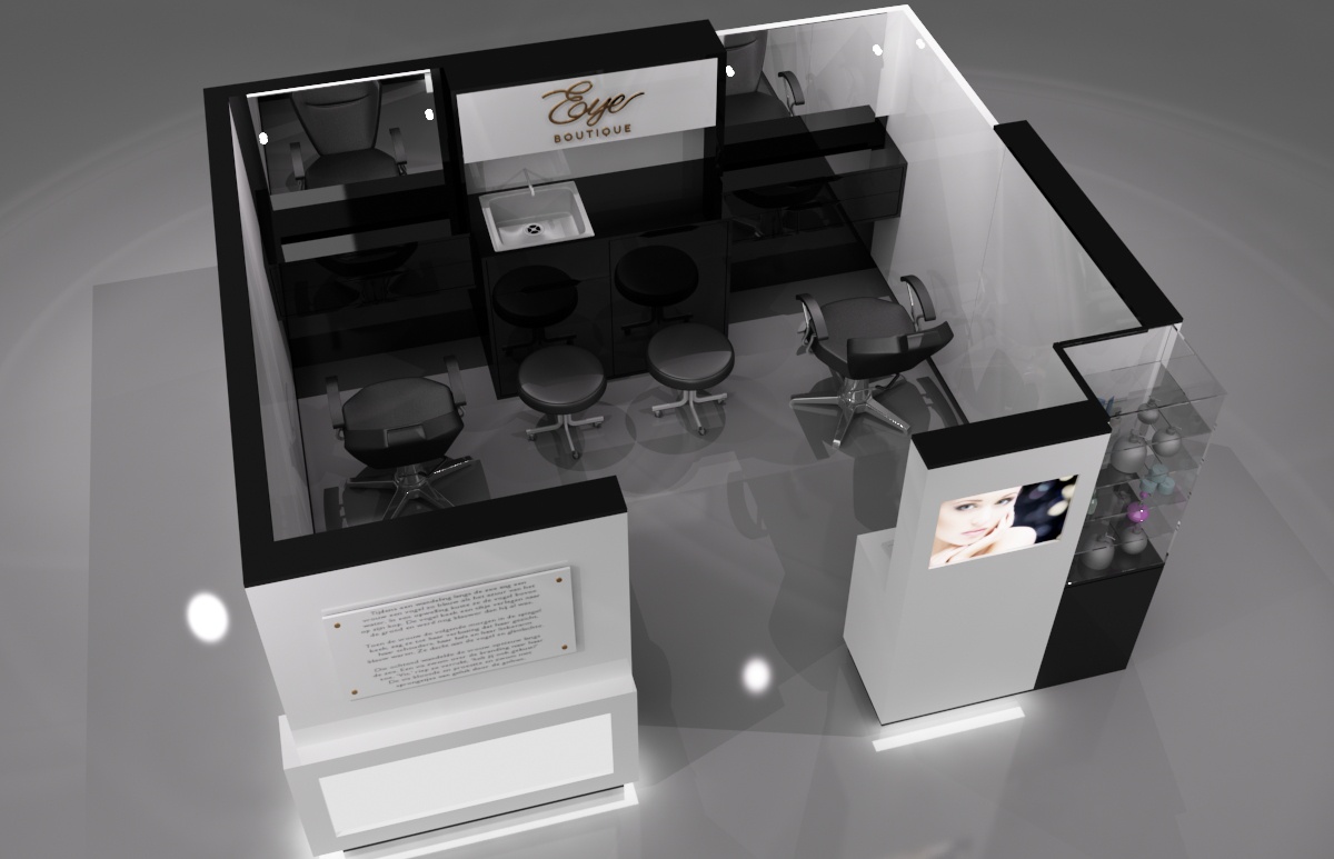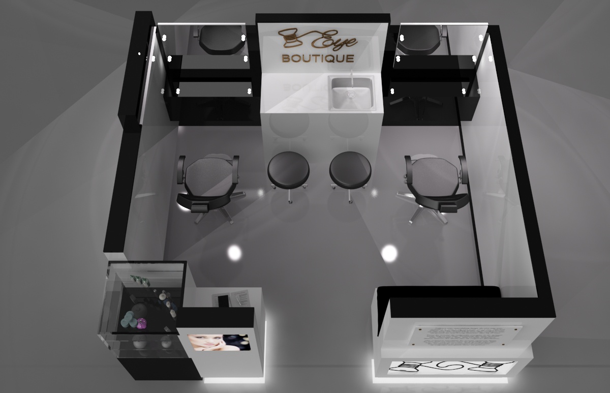 Kosmetyczna wyspa usługowa dla firmy zajmującej się pielęgnacją brwi – wersja druga.
