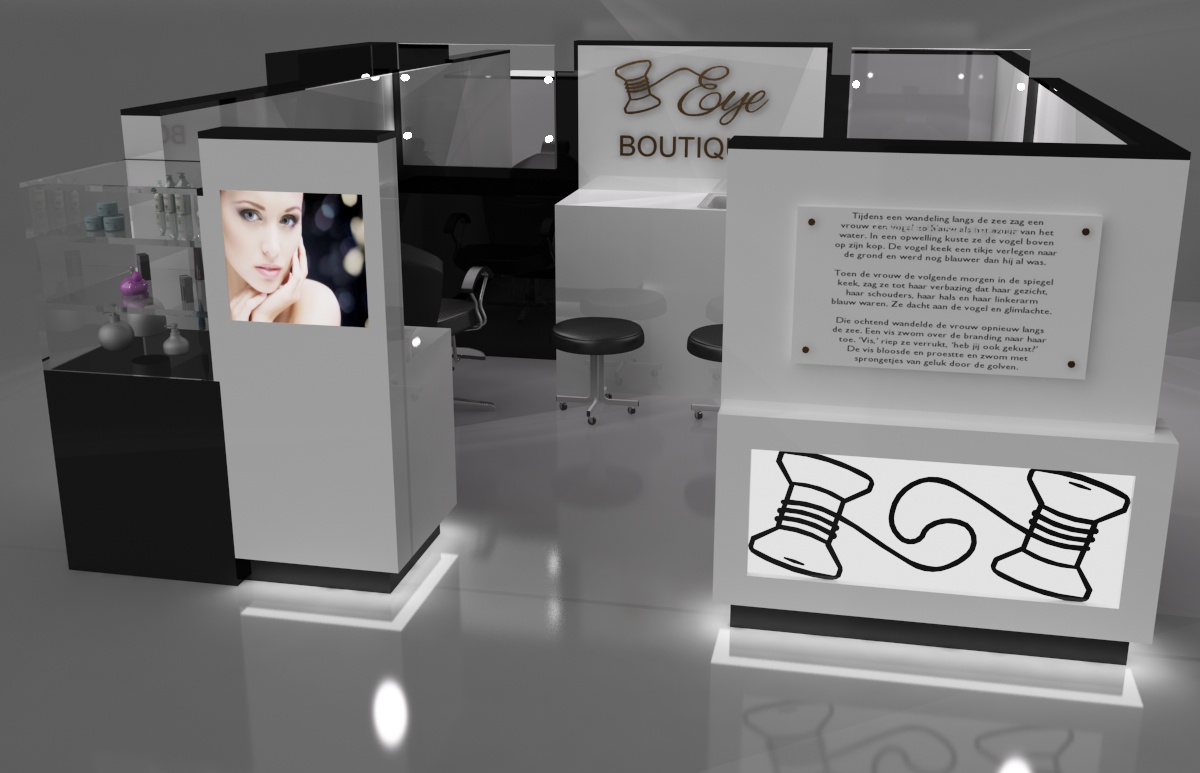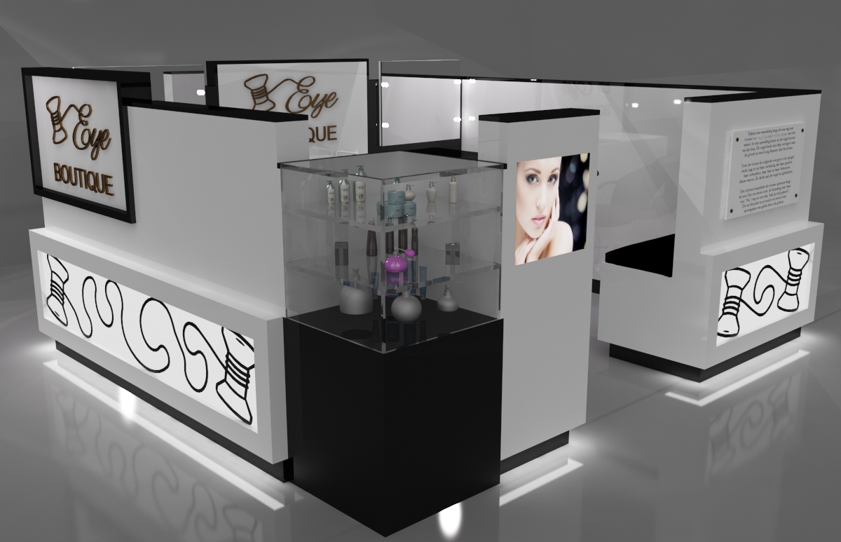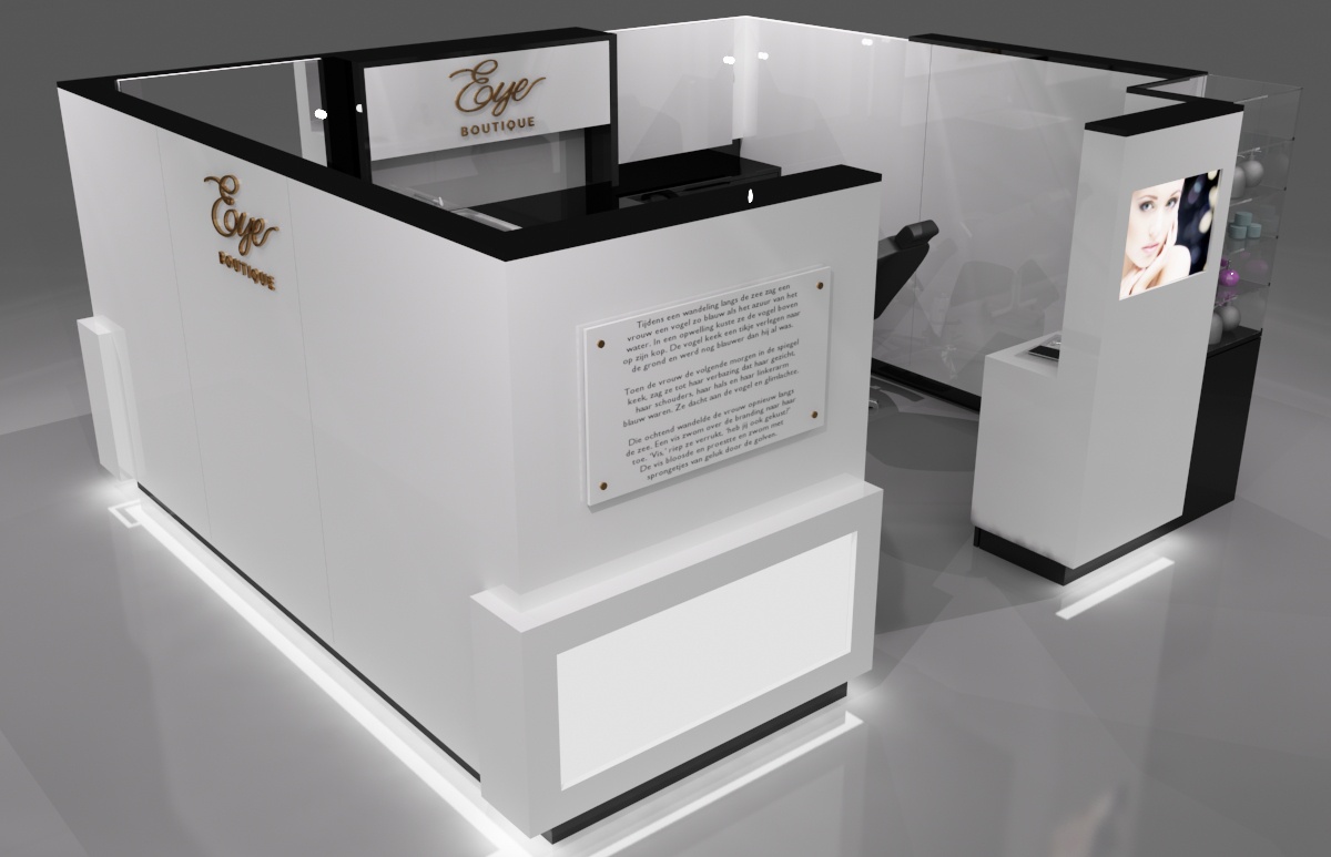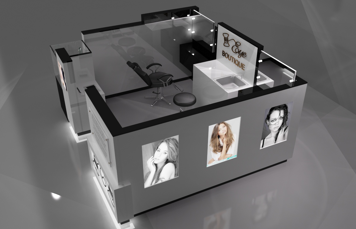Kosmetyczna wyspa usługowa dla firmy zajmującej się pielęgnacją brwi – wersja druga.