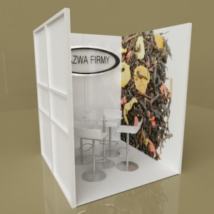 Konstrukcja: Stoisko targowe zamknięte z trzech stron o powierzchni 4 m2 (2 x 2 m). Ściany o wysokości 3 m wykonane w oparciu o konstrukcję stalową – modułowe ramy stalowe o szerokości 1m.