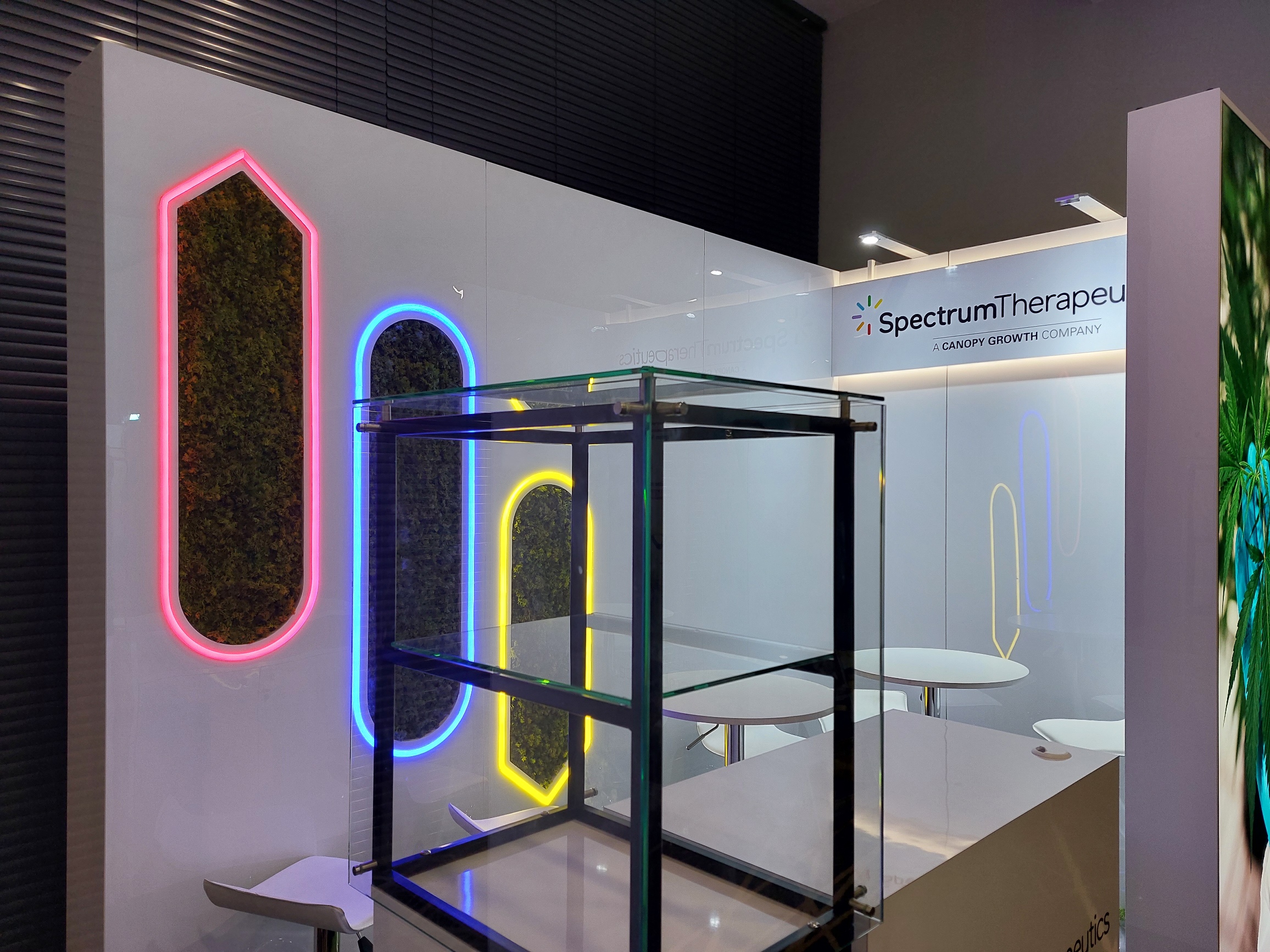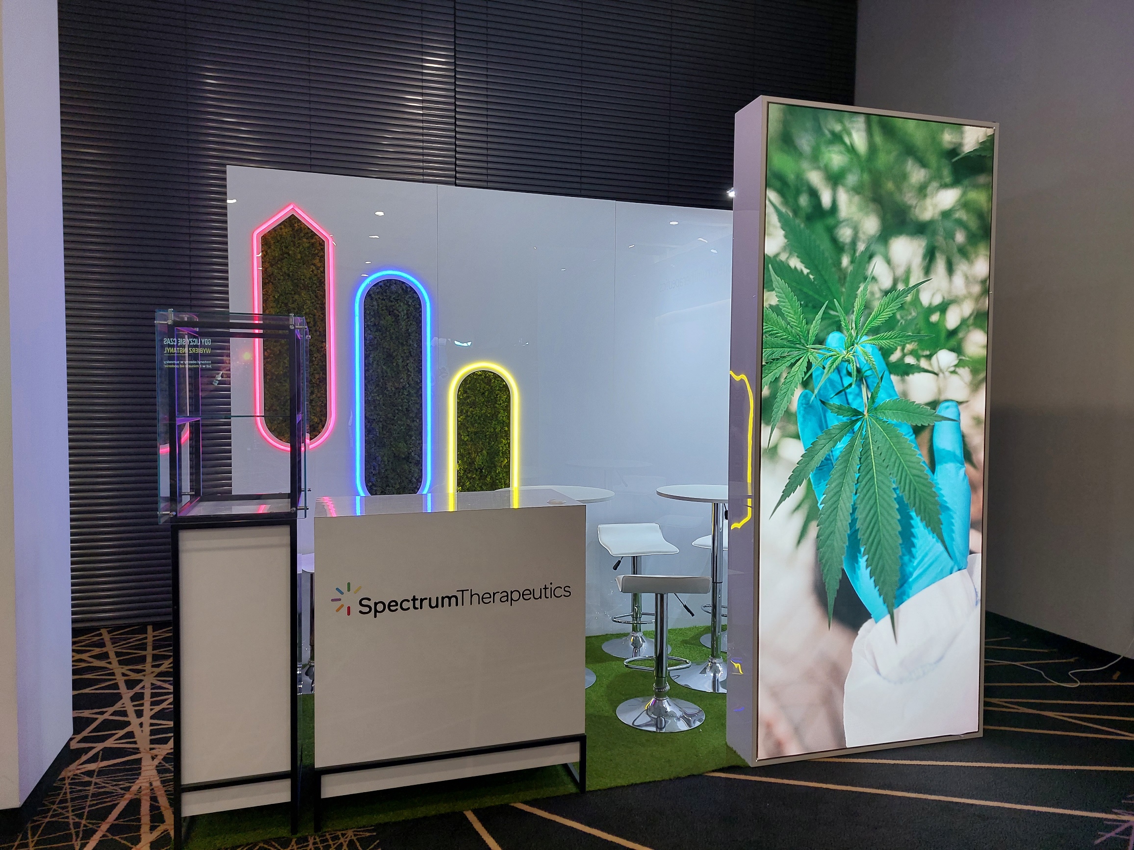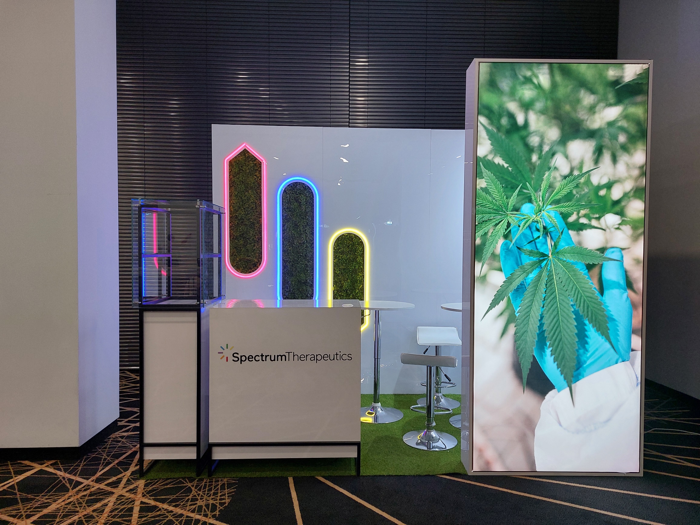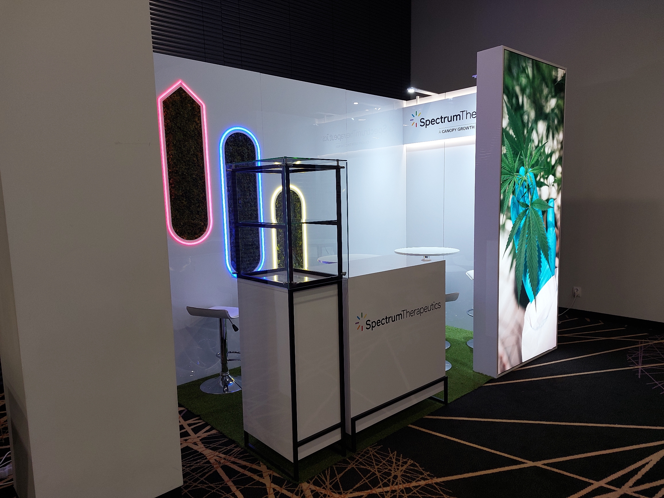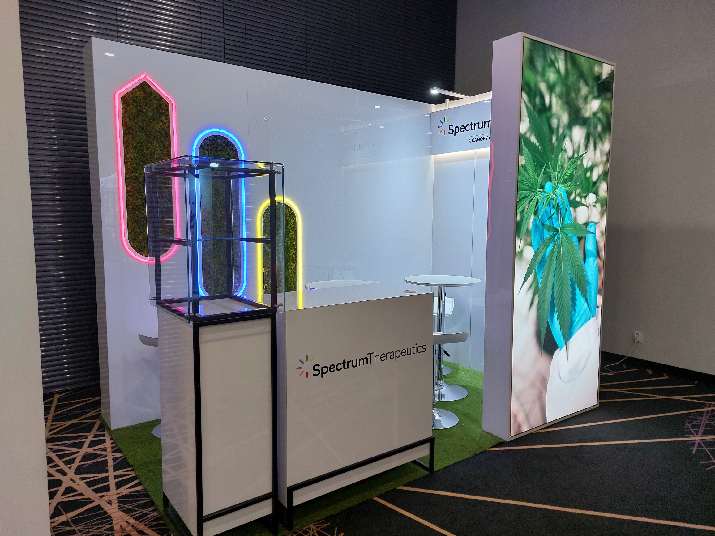 Stoisko targowe marki Spectrum Cannabis/Spectrum Therapeutics to projekt, który z powodzeniem łączy w sobie elementy systemowe z indywidualnymi rozwiązaniami stworzonymi na zamówienie. Zastosowanie różnych technologii i materiałów, takich jak stal, aluminium, laminat HPL czy szkło hartowane, pozwoliło na uzyskanie nie tylko funkcjonalnego, ale również atrakcyjnego wizualnie stoiska. Zapraszamy do zapoznania się z naszą ofertą i skorzystania z naszych usług – SPS stoisko.com