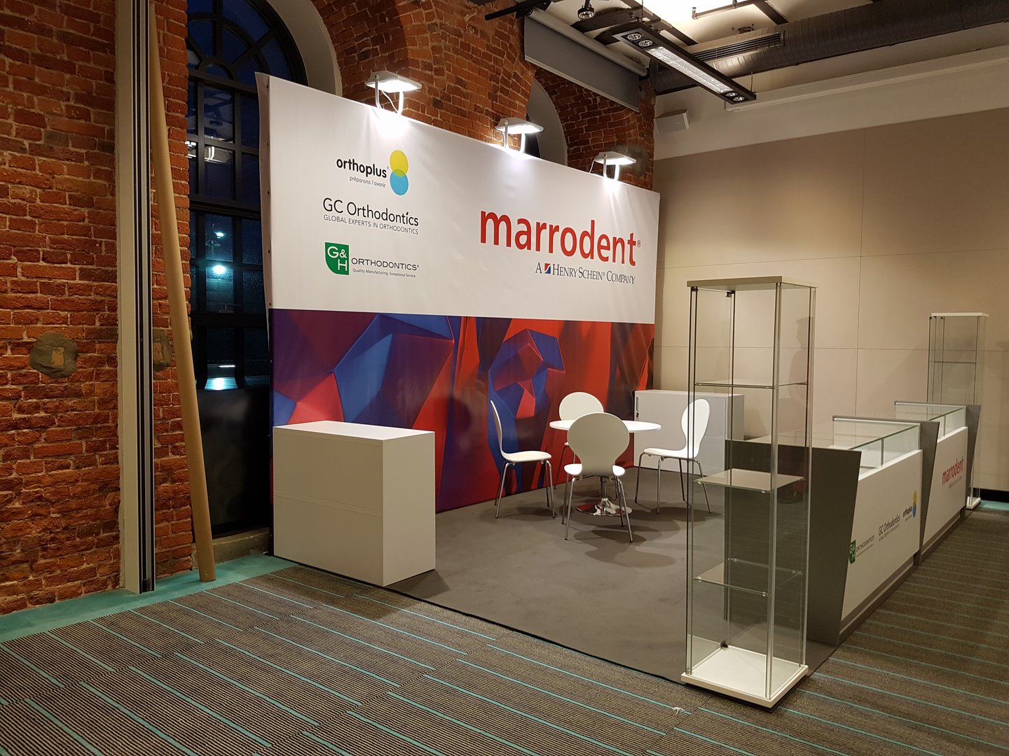 Małe stoisko konferencyjne przeznaczone na zjazdy odbywające się w hotelach czy salach hotelowych.