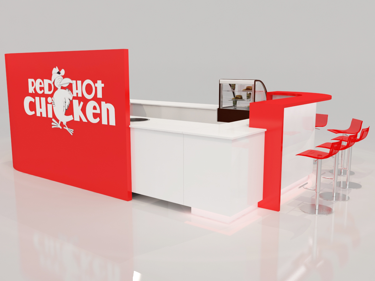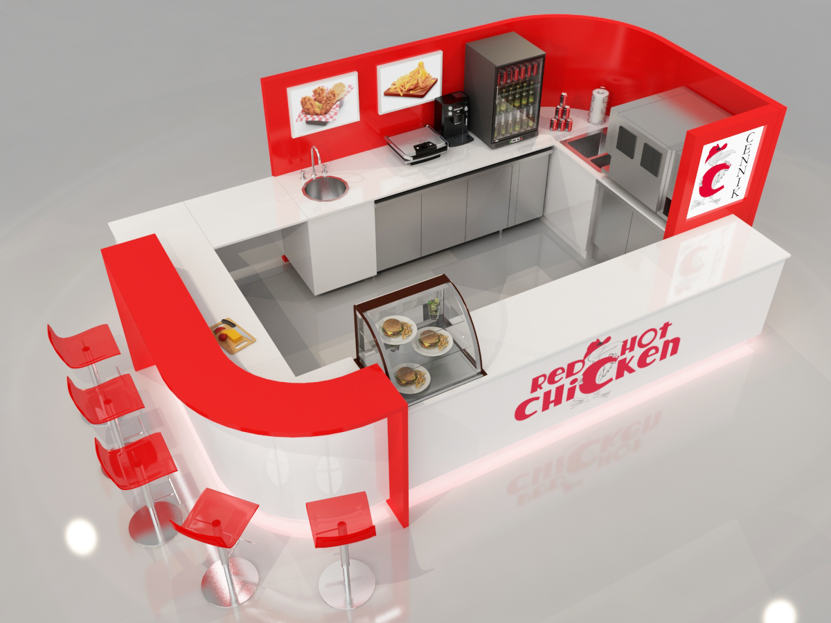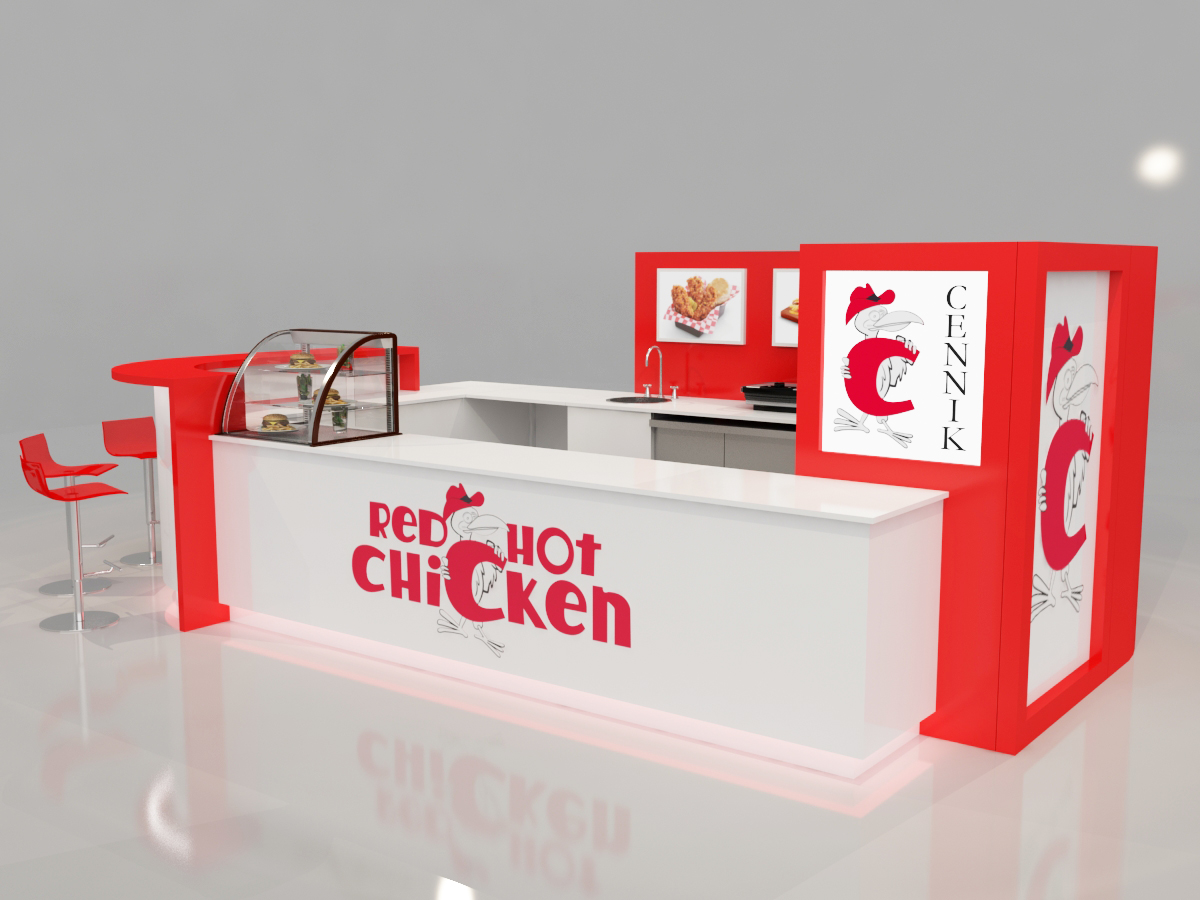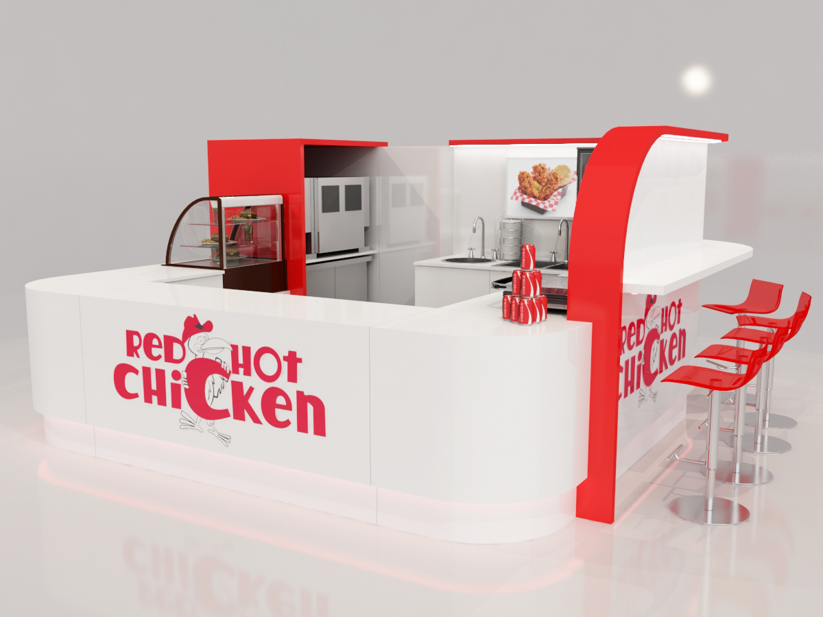 Gastronomiczna wyspa handlowa dla firmy Red Hot Chicken