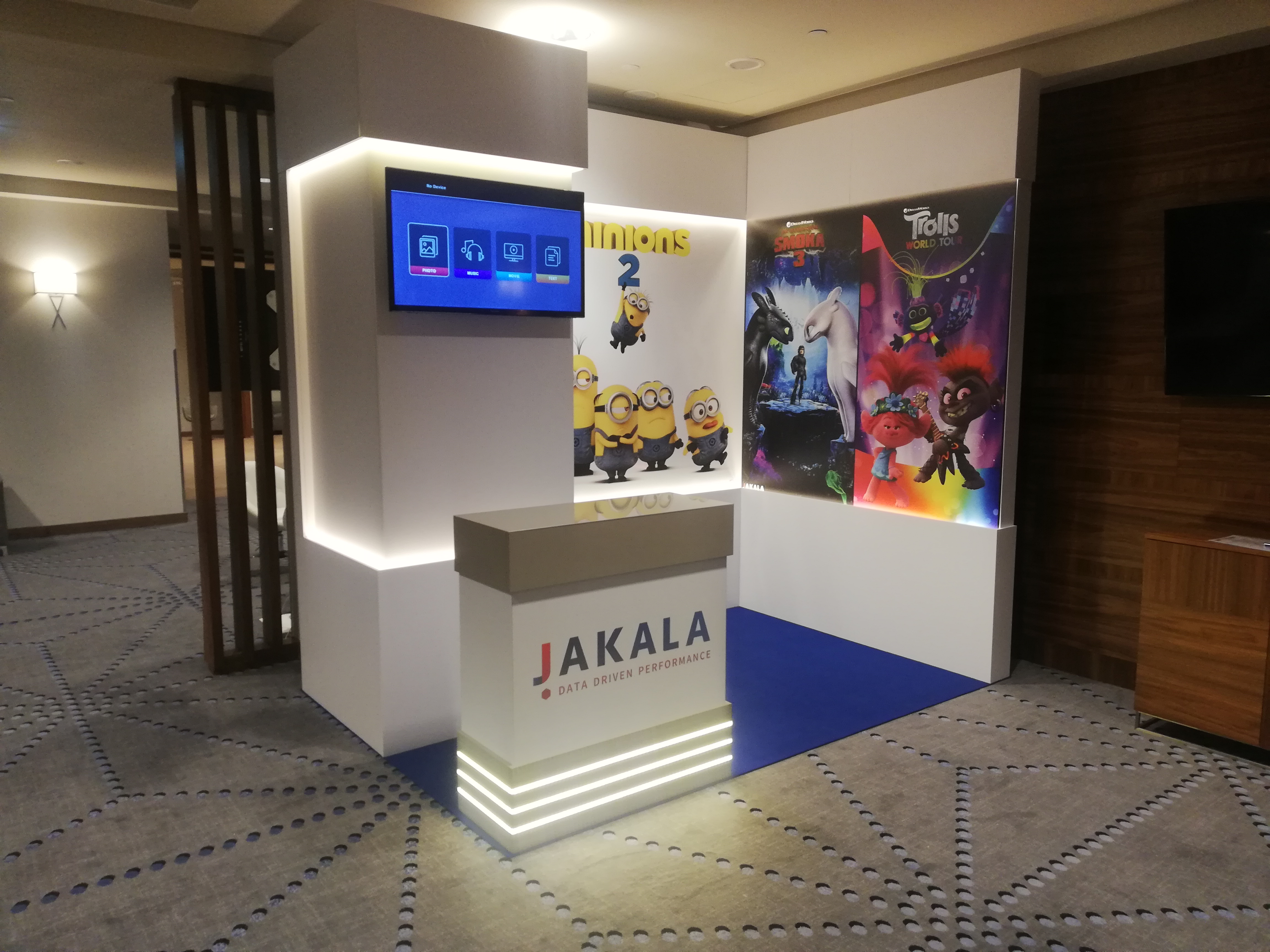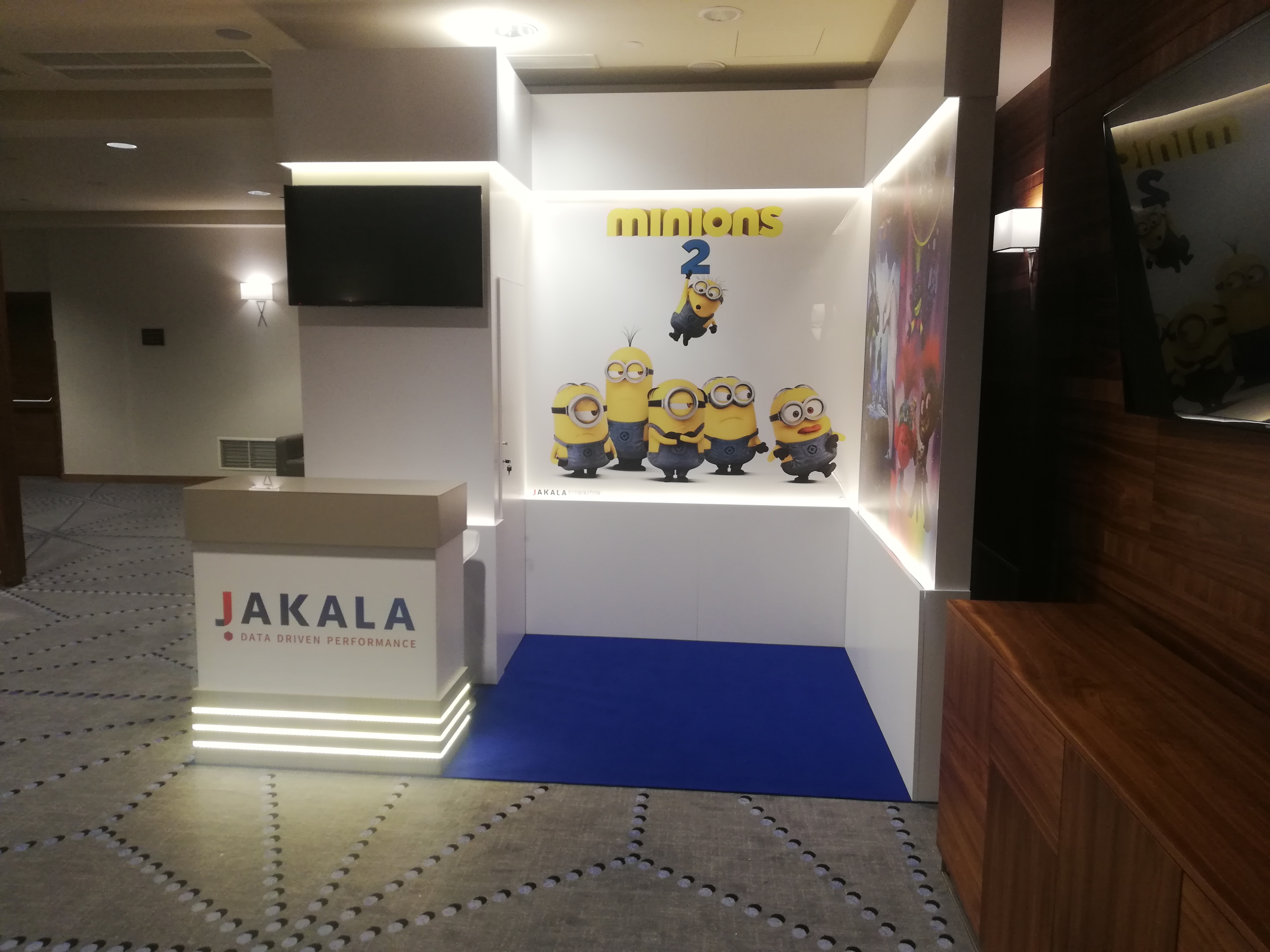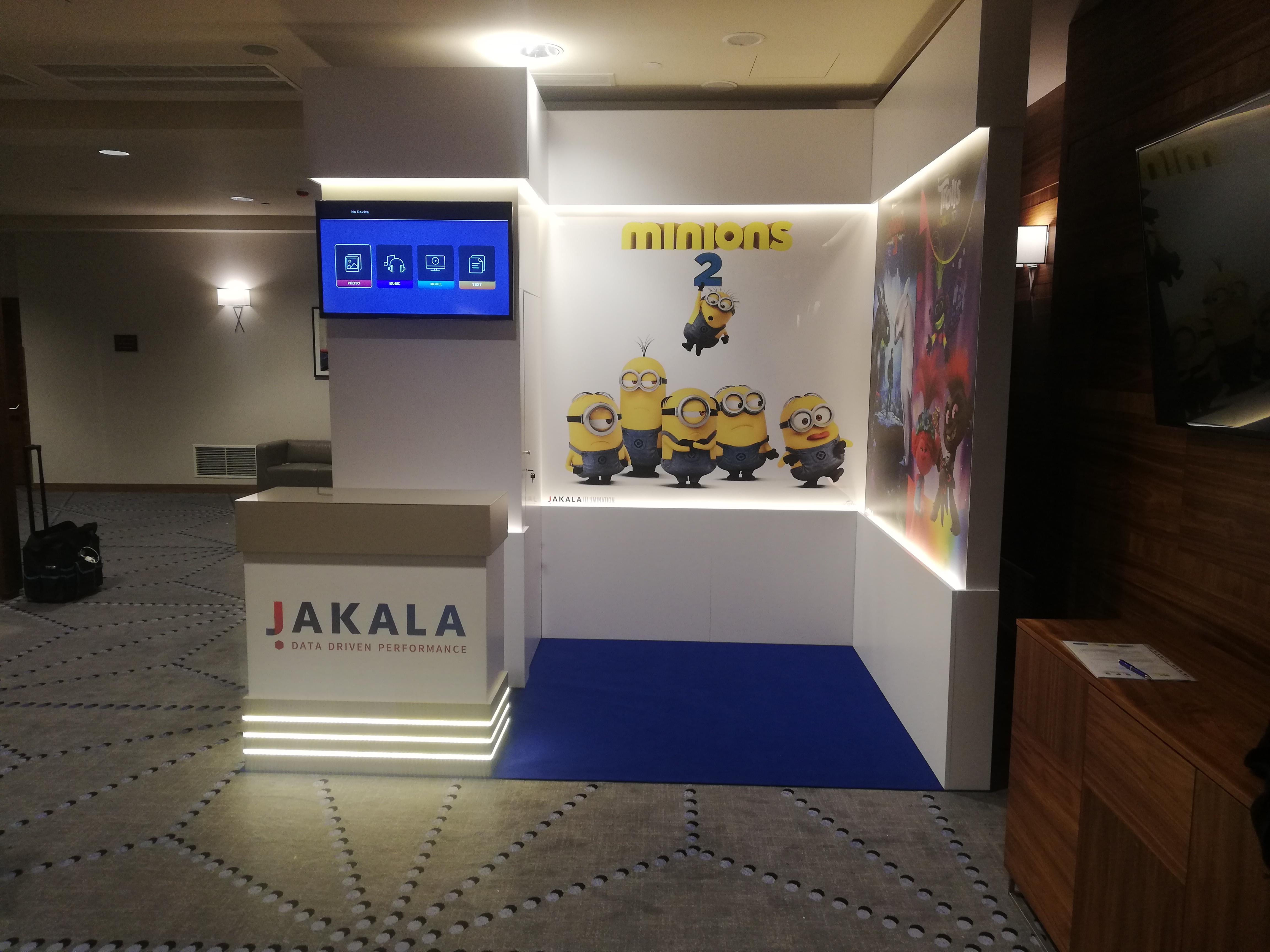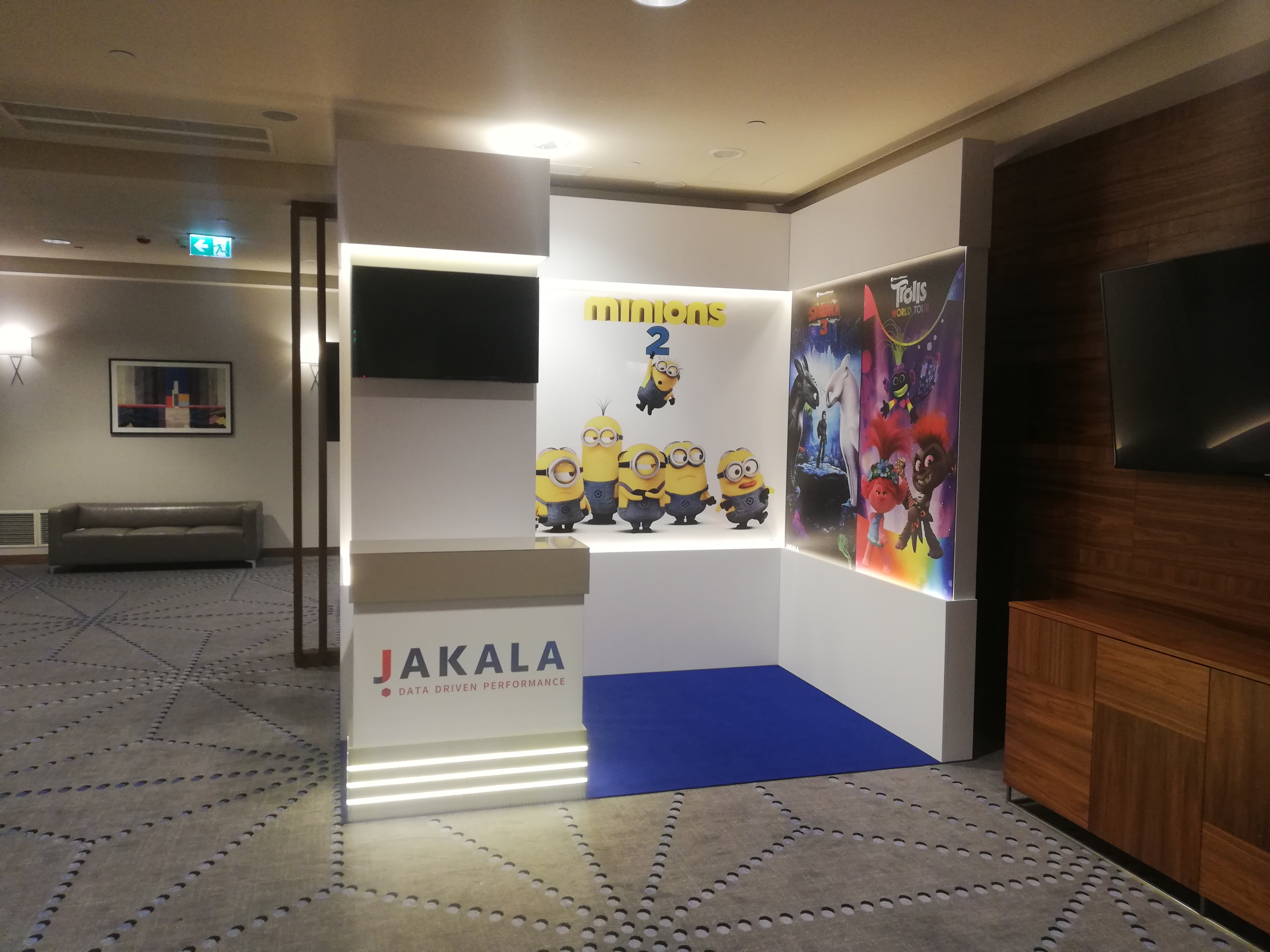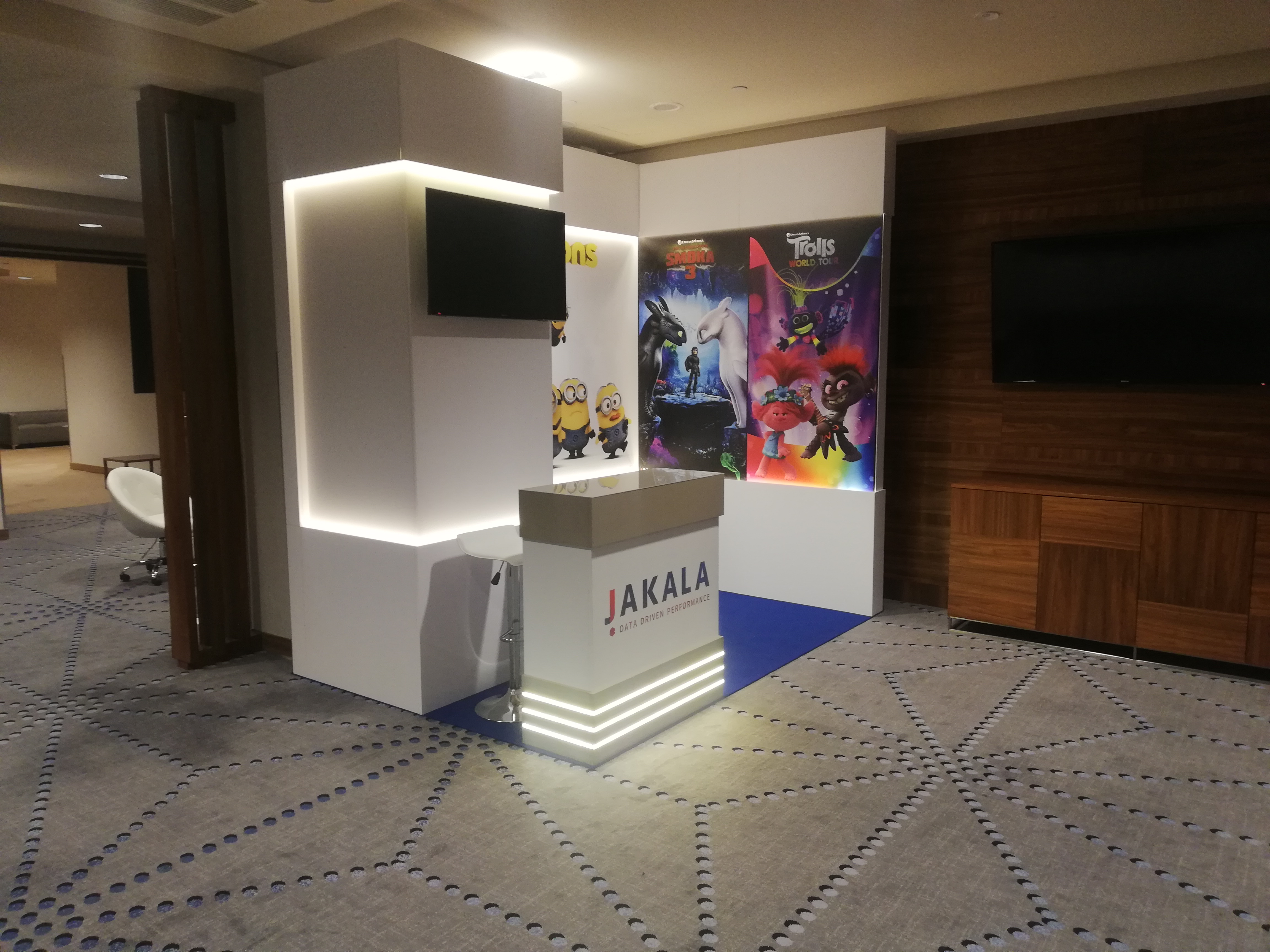 Budowa stoiska targowego dla międzynarodowej firmy SERI Jakala (JAKALA Sp. A.), tak by mieściło wszystkie potrzebne elementy na stosunkowo niewielkiej powierzchni 2×3 metry, stanowiło ciekawe wyzwanie dla naszej firmy. Na 6 metrach kwadratowych zabudowy wystawienniczej znalazły się: dwukolorowa lada z podświetleniami LED i grafiką na froncie, modułowe ściany wykonane z płyt meblowych z podświetleniami LED, a nawet małe zaplecze. Stoisko, którego montażu dokonaliśmy bezproblemowo w ciągu kilku godzin przed konferencją, podziwiać można było na Loyalty Summit w Hotelu Double Tree by Hilton w Krakowie.