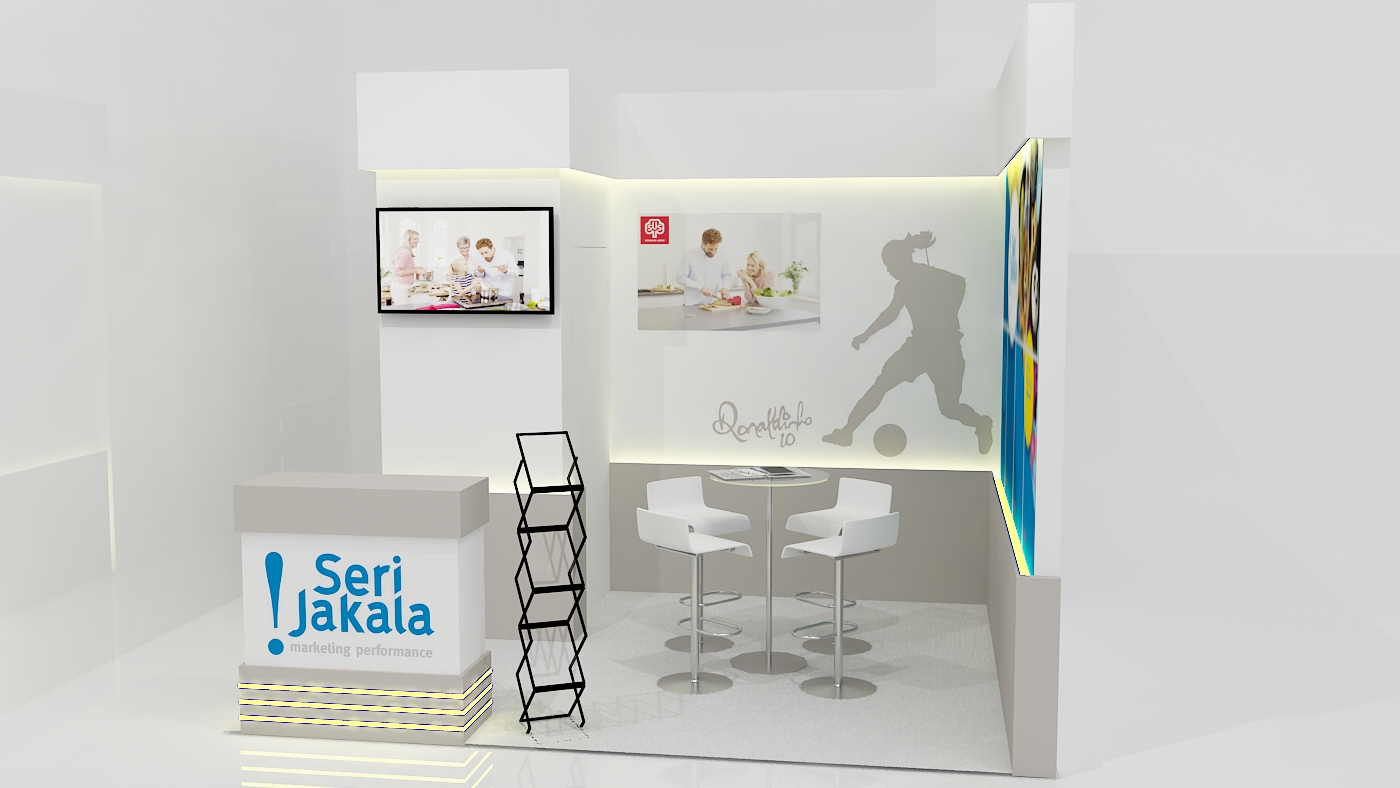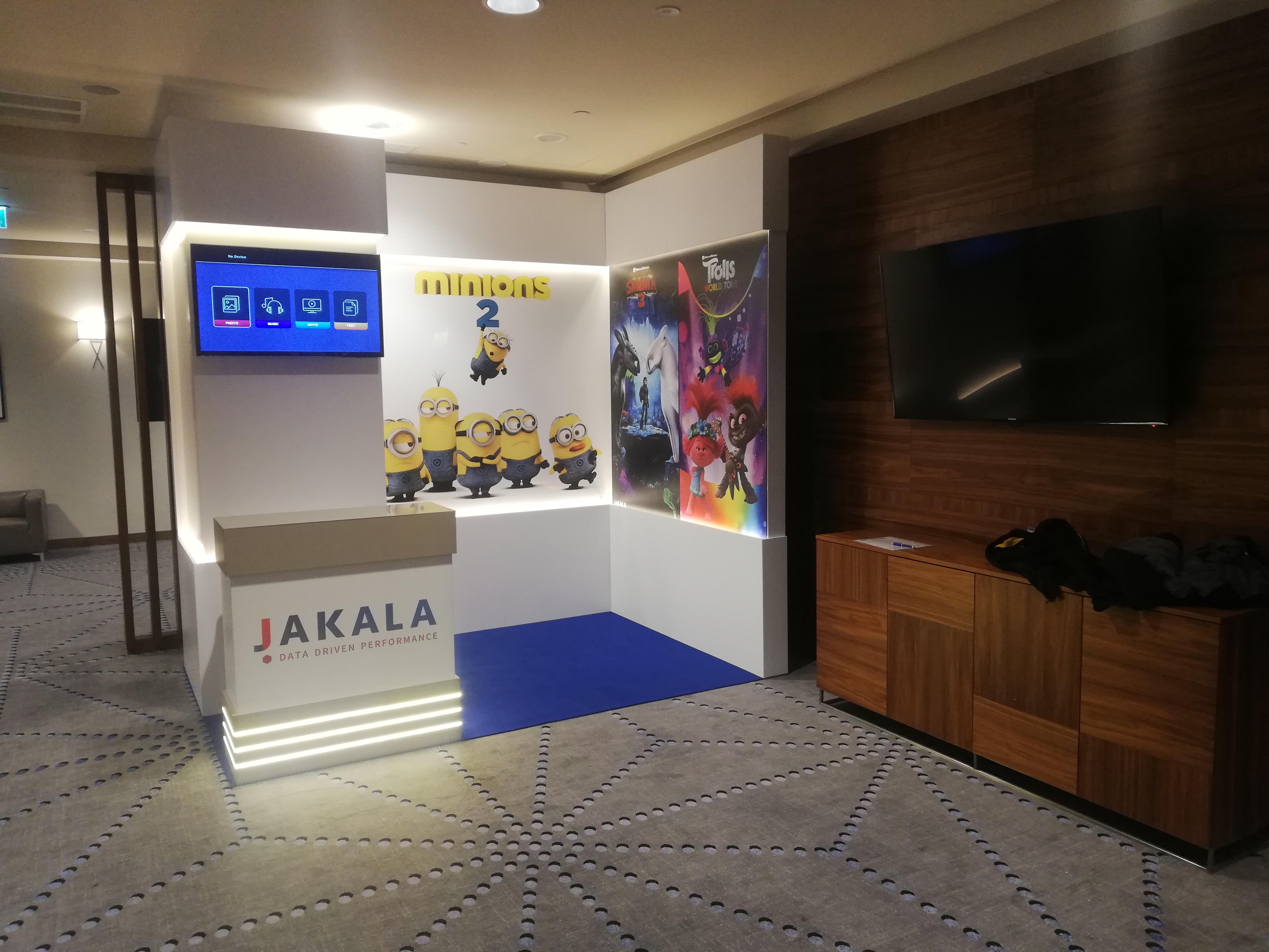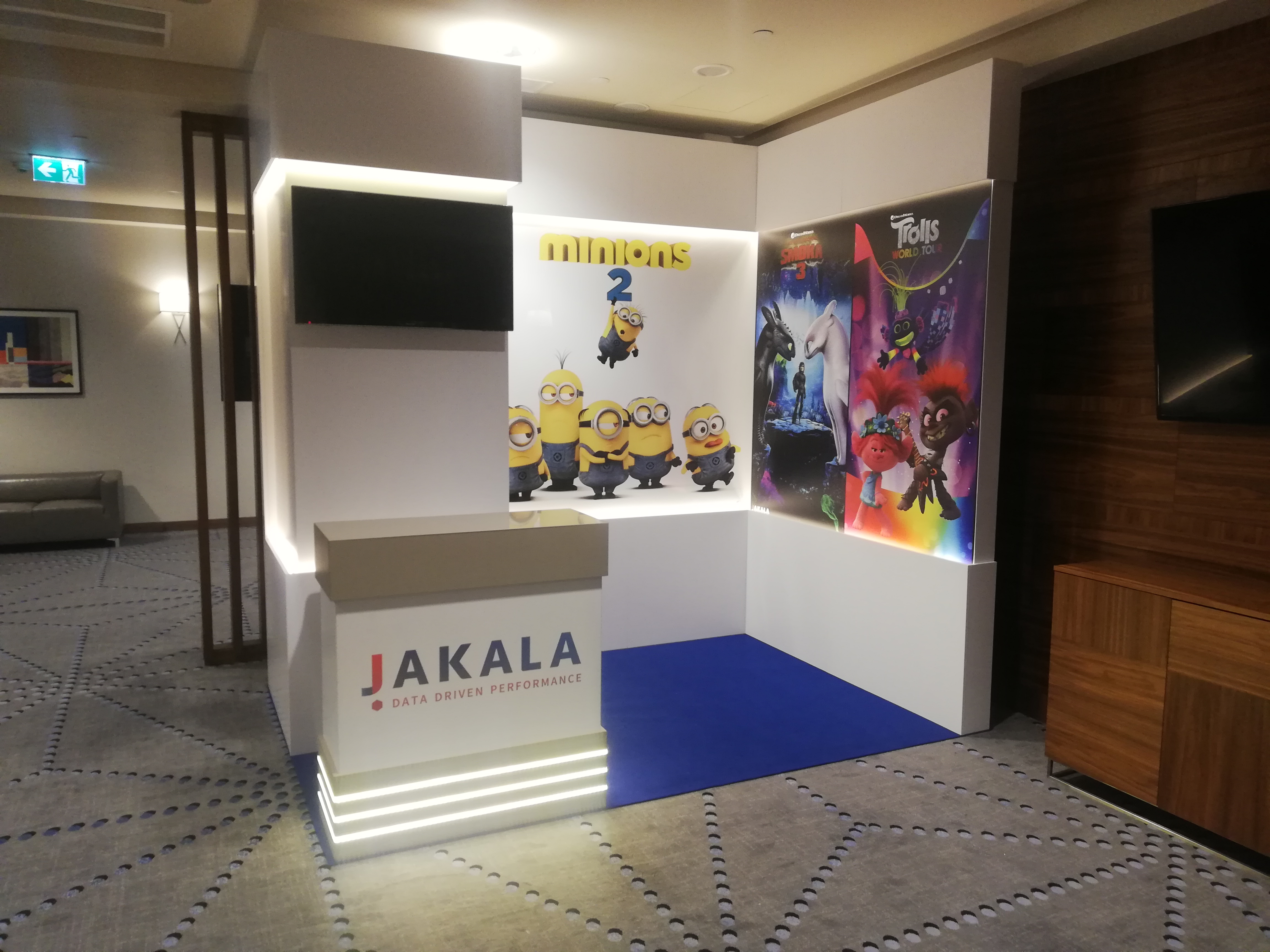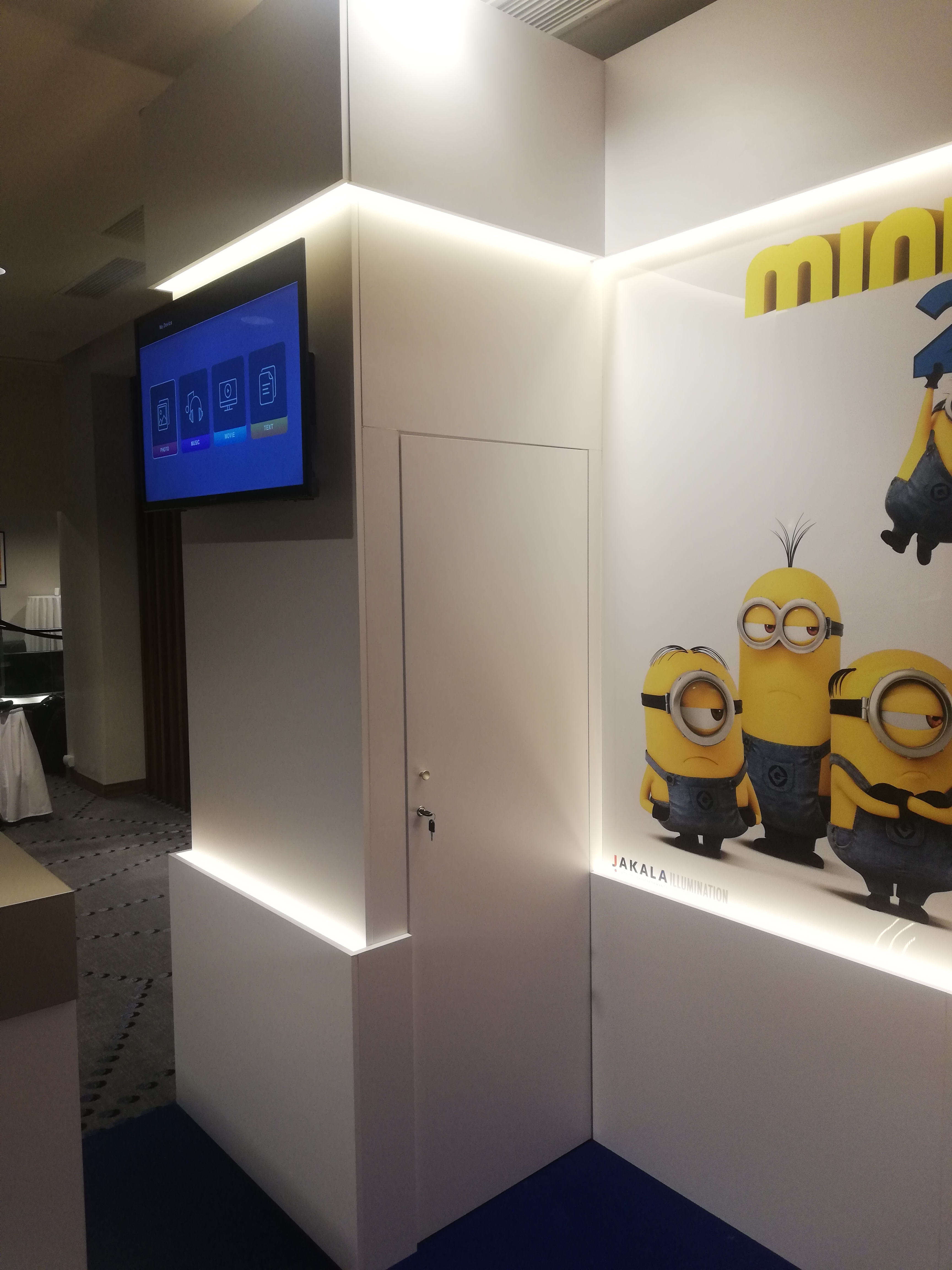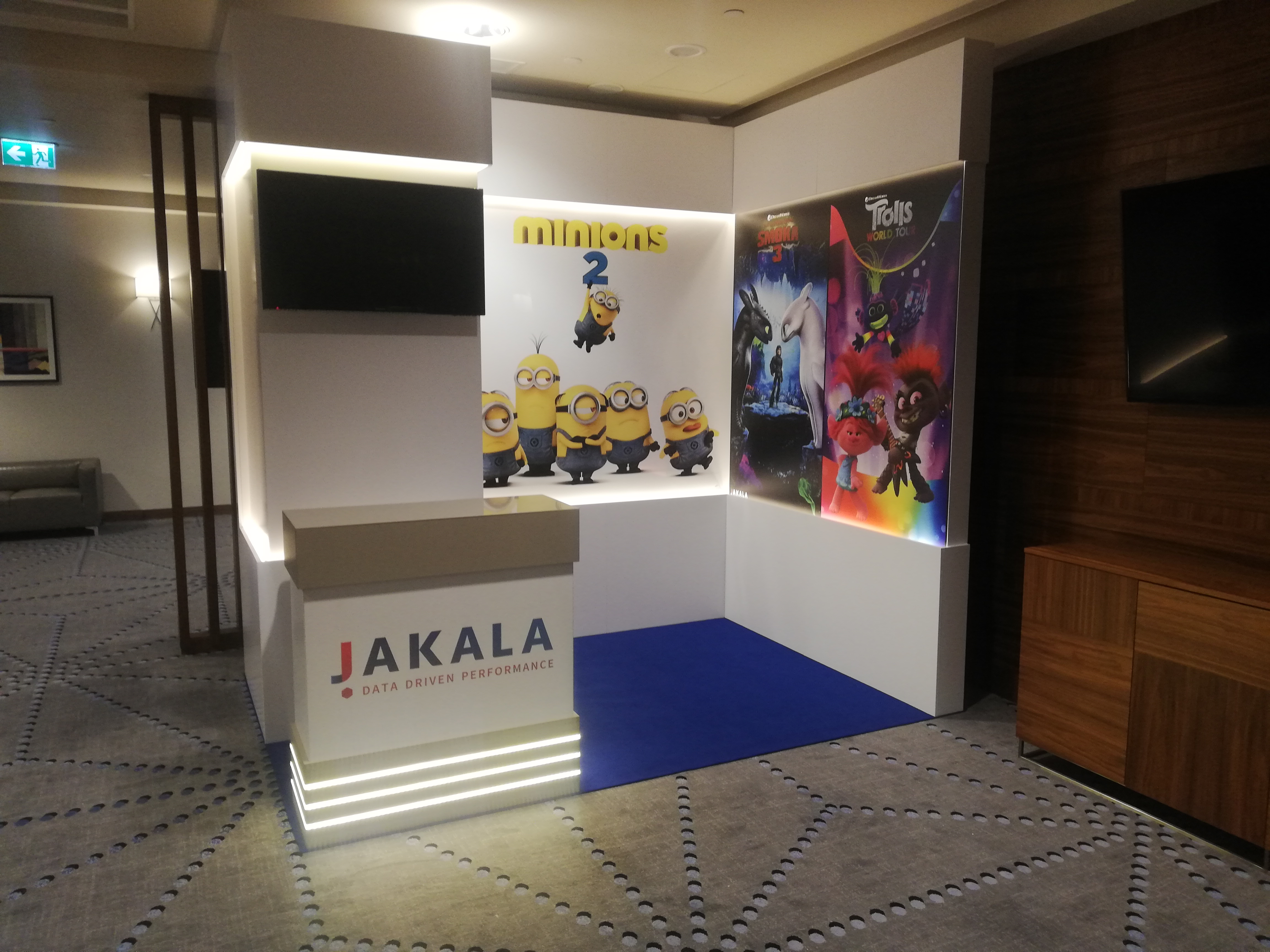 Budowa stoiska targowego dla międzynarodowej firmy SERI Jakala (JAKALA Sp. A.), tak by mieściło wszystkie potrzebne elementy na stosunkowo niewielkiej powierzchni 2×3 metry, stanowiło ciekawe wyzwanie dla naszej firmy. Na 6 metrach kwadratowych zabudowy wystawienniczej znalazły się: dwukolorowa lada z podświetleniami LED i grafiką na froncie, modułowe ściany wykonane z płyt meblowych z podświetleniami LED, a nawet małe zaplecze. Stoisko, którego montażu dokonaliśmy bezproblemowo w ciągu kilku godzin przed konferencją, podziwiać można było na Loyalty Summit w Hotelu Double Tree by Hilton w Krakowie.
