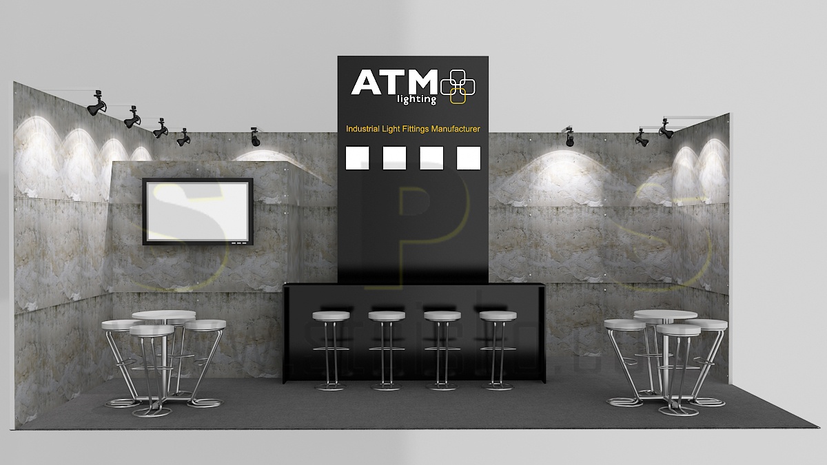 Stoisko targowe ze ścianami pokrytymi tynkiem dekoracyjnym