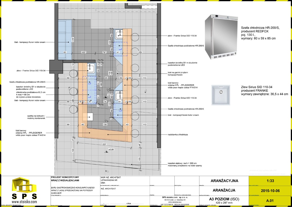 Gastronomiczna wyspa handlowa na potrzeby Sushi Bar, przeznaczona do wydawania dań kuchni japońskiej.
