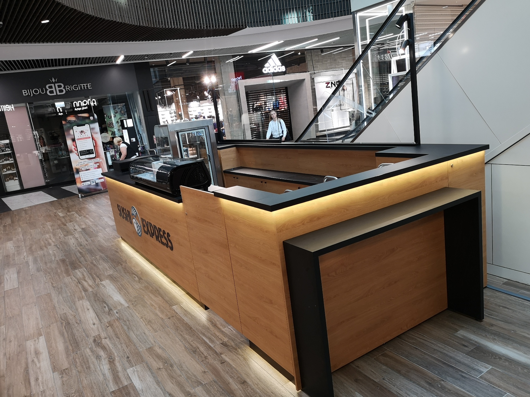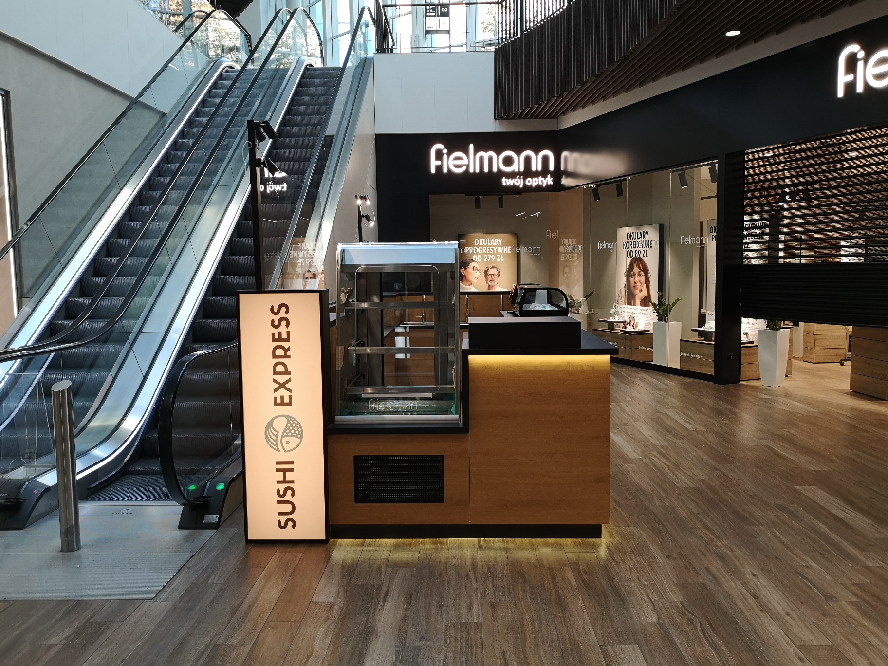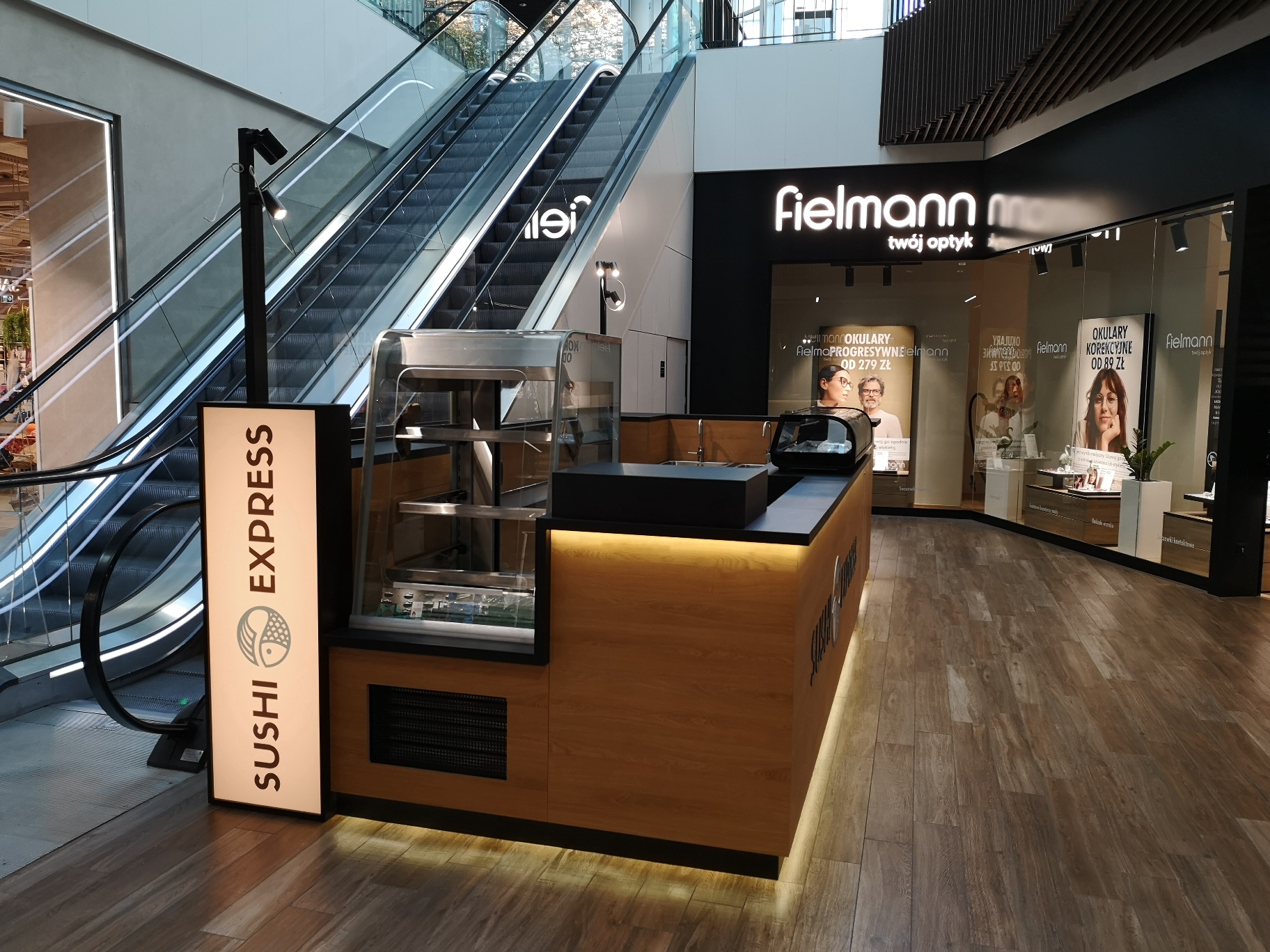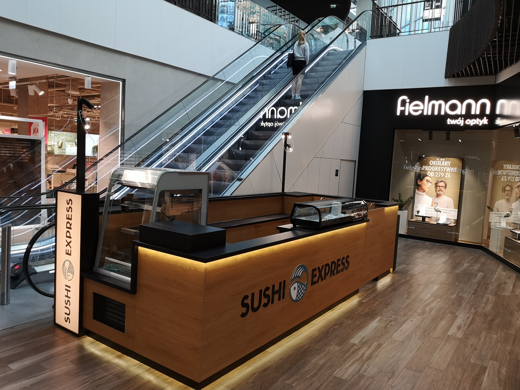 Nasze najnowsze wyzwanie to stoisko gastronomiczne dla marki Sushi Express w Galerii Handlowej Forum Gdańsk. Wąska przestrzeń pomiędzy schodami ruchomymi a korporacyjnym sklepem stworzyła jednocześnie wyjątkowe i wymagające warunki, które z sukcesem spełniliśmy, tworząc efektywną strefę produkcji i sprzedaży.
