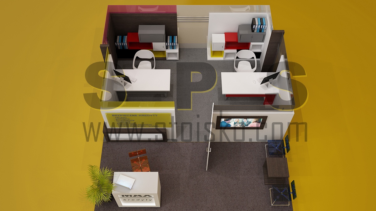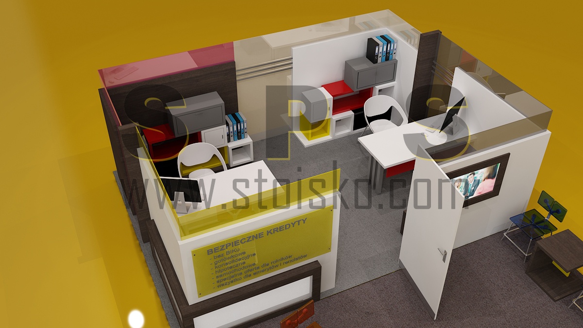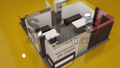 Nasza propozycja wyspy handlowej możliwej do ustawienia w galerii handlowej dla stoiska obsługi bankowej, ubezpieczeniowej itp.