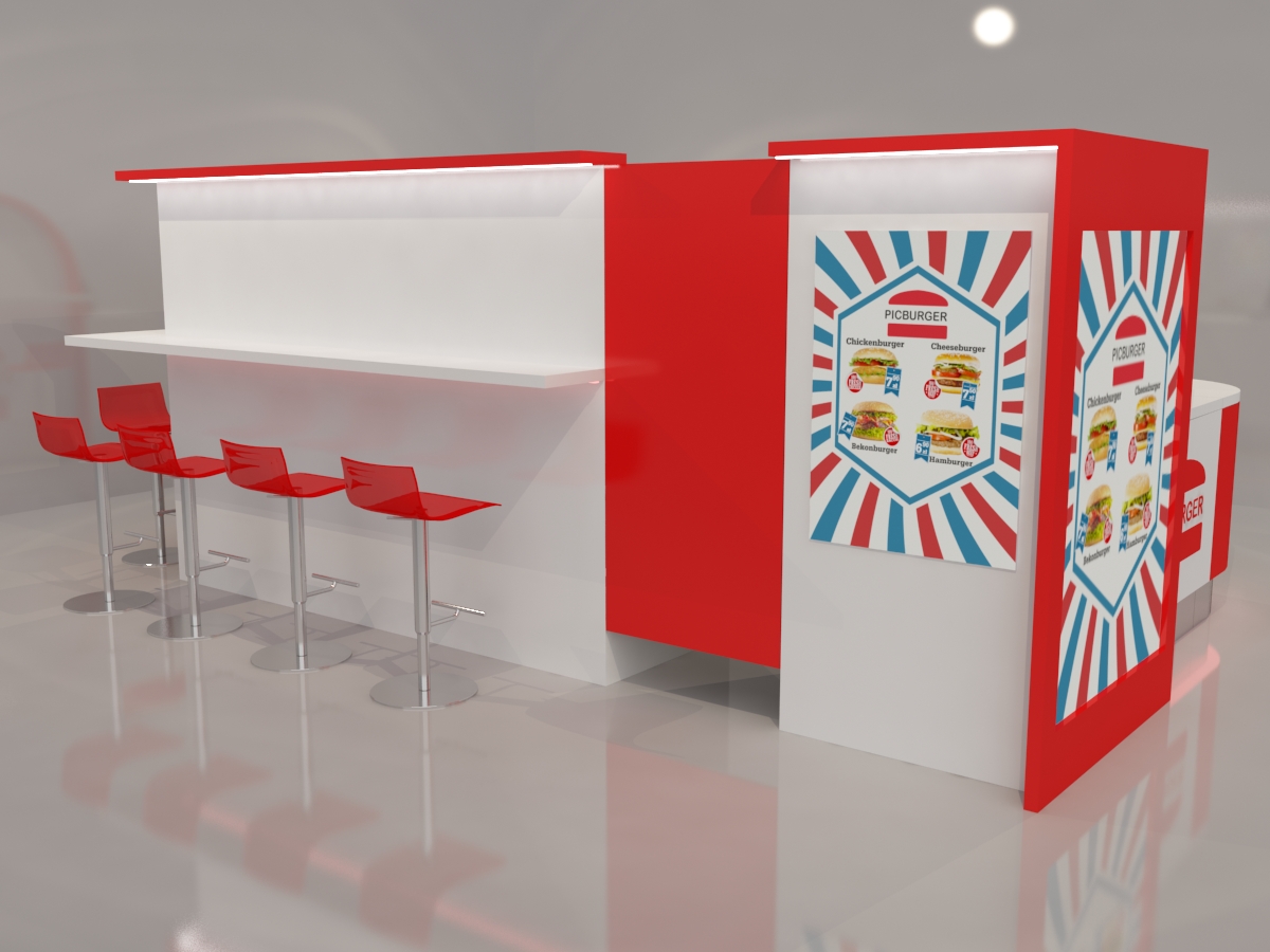 Wyspa handlowa dla firmy picburger z hamburgerami.