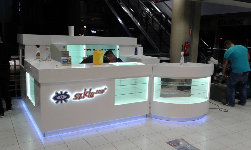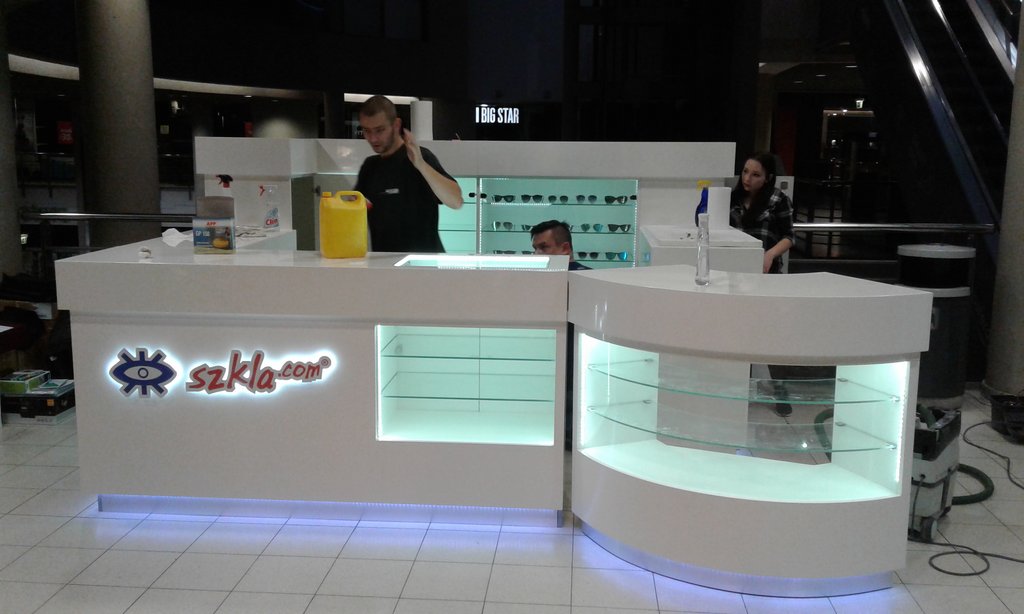 Projekt i wykonanie wyspy handlowej z okularami