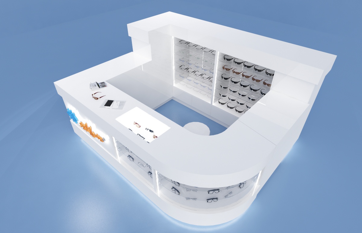 Stoisko typu wyspa na okulary optyczne i przeciwsłoneczne