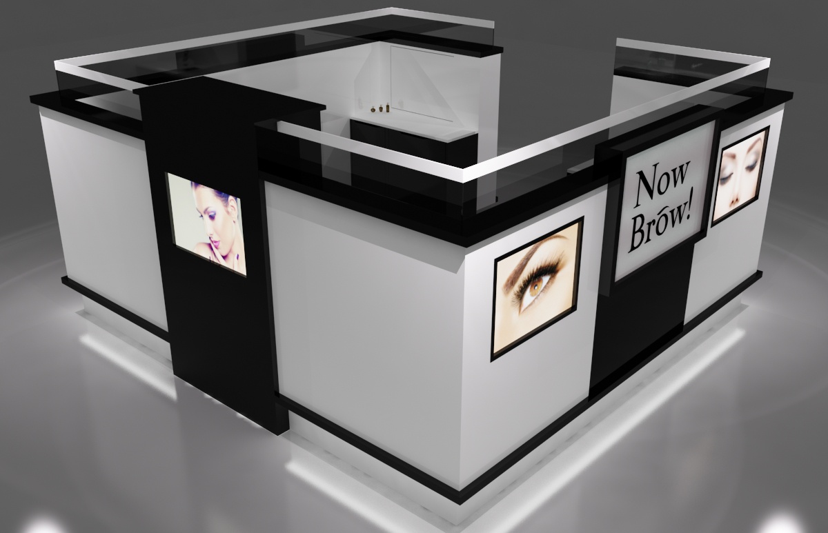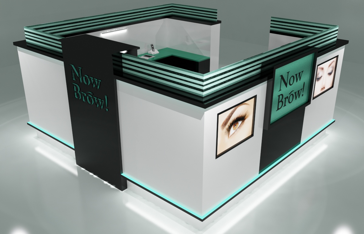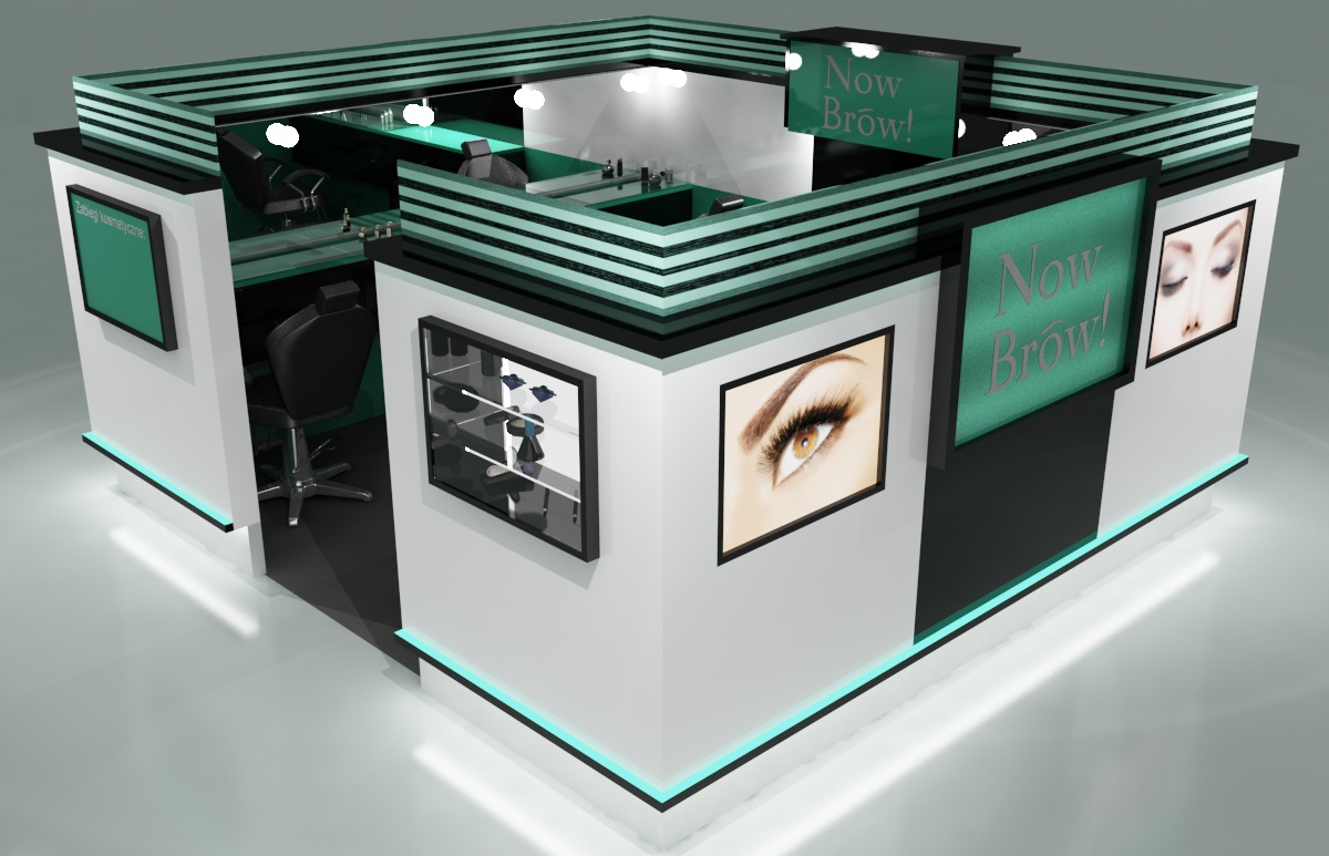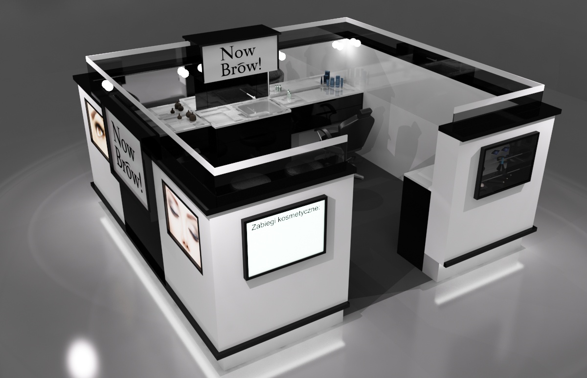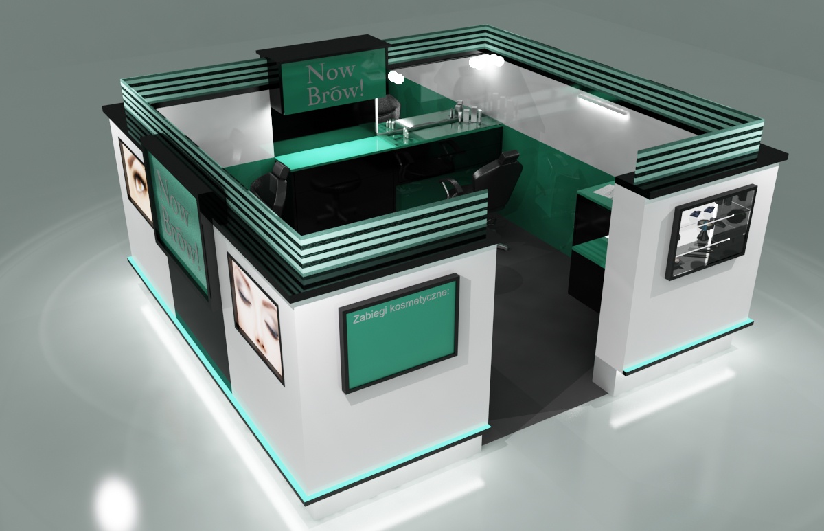Projekt wyspy kosmetycznej zajmującej się manicure oraz pielęgnacją paznokci przystosowany do ustawienia w galerii handlowej.